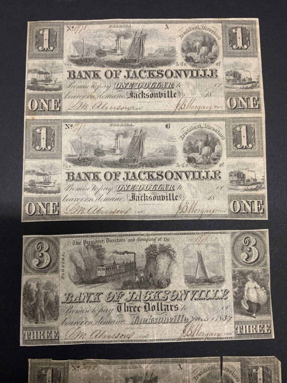 Bank Of Jacksonville, Florida Obsolete Currency Notes.