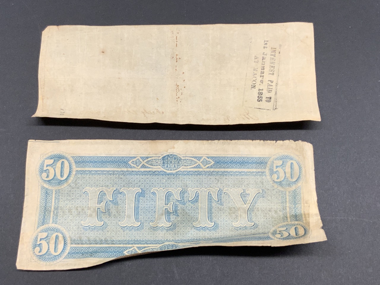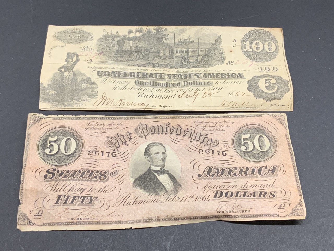 $50 and $100 Dollar Richmond, Virginia Confederate States Of America Bank Notes.