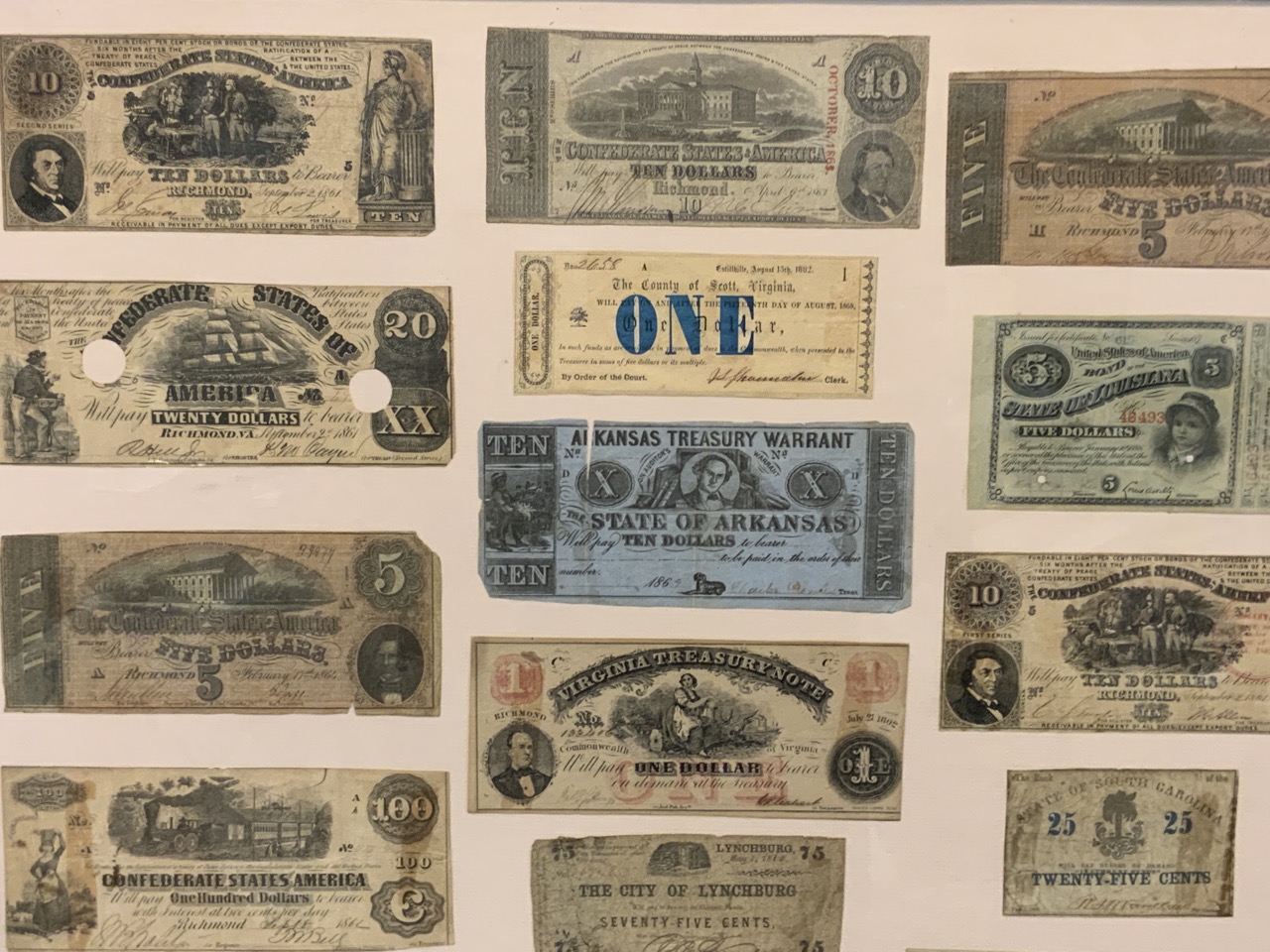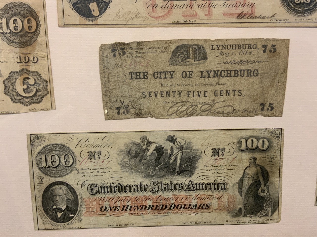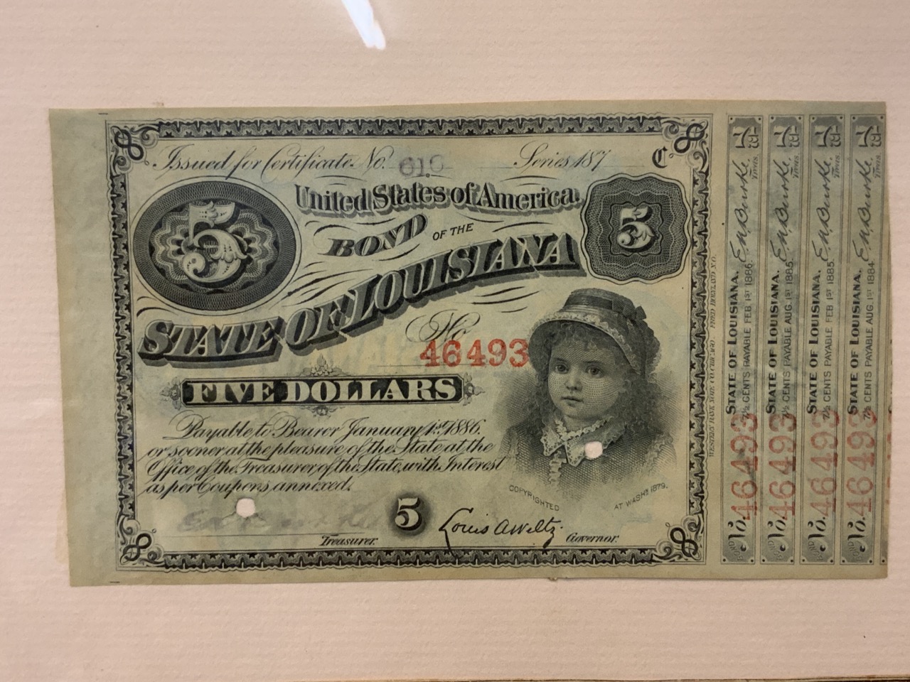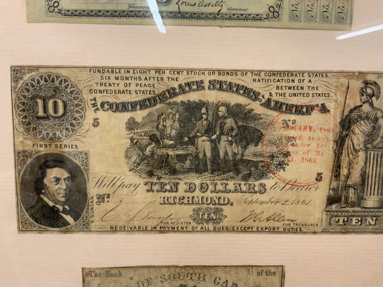 Sixteen (16) Confederate Bank Notes. Arkansas Treasury Warrant Note. Not removed from frame for inspection. Original notes. Please see photograph preview.