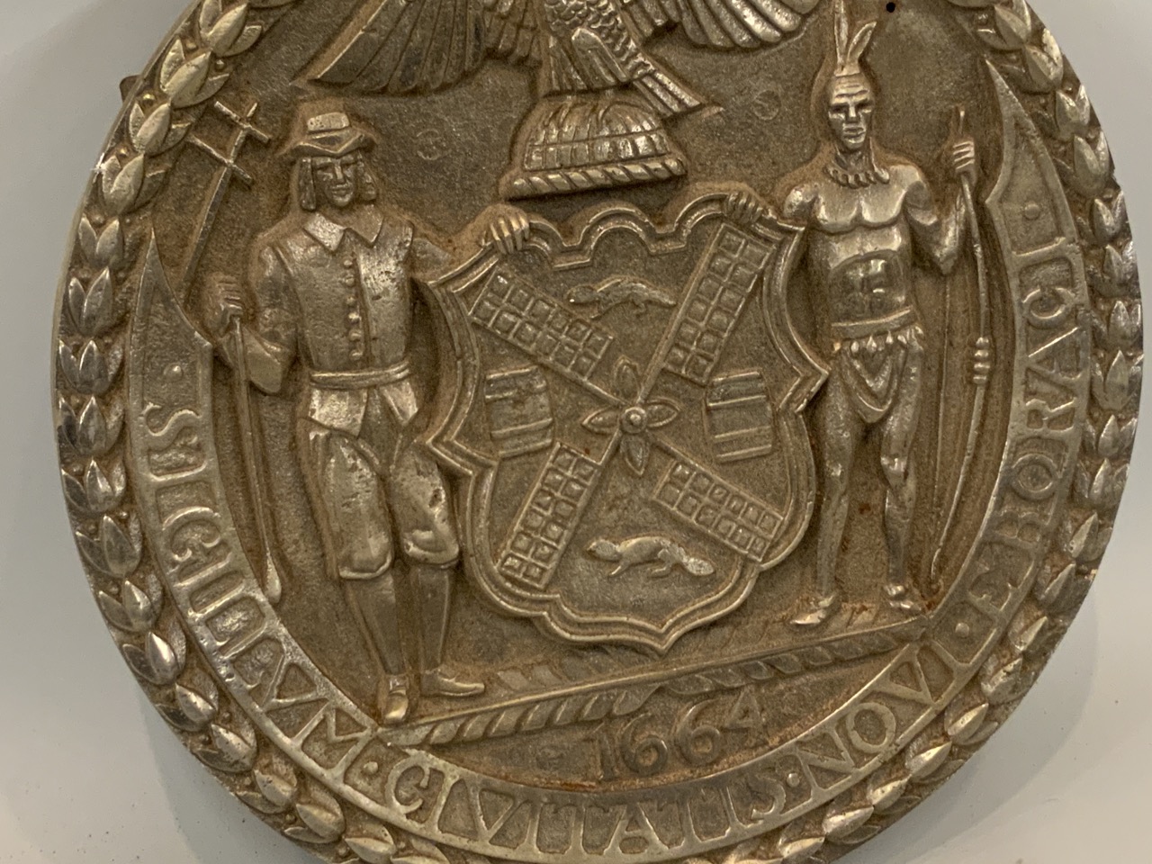 c. 1928 original cast iron seal from West Side Highway New York City. Designed by Rene Chambellan. An architectural gem. Was dismantled in 1970's. Approx. Weight is 80lbs.