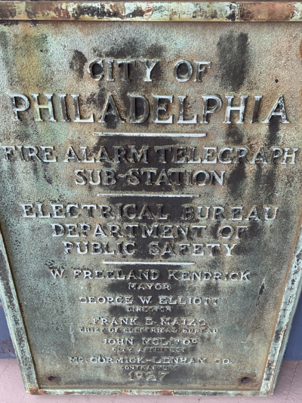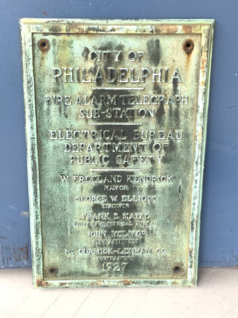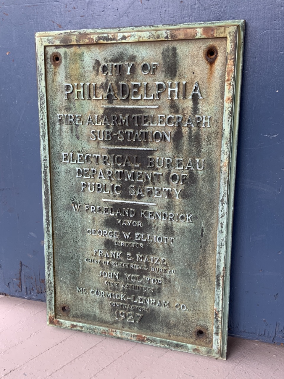 City Of Philadelphia c.1927 fire alarm telegraph substation sign.