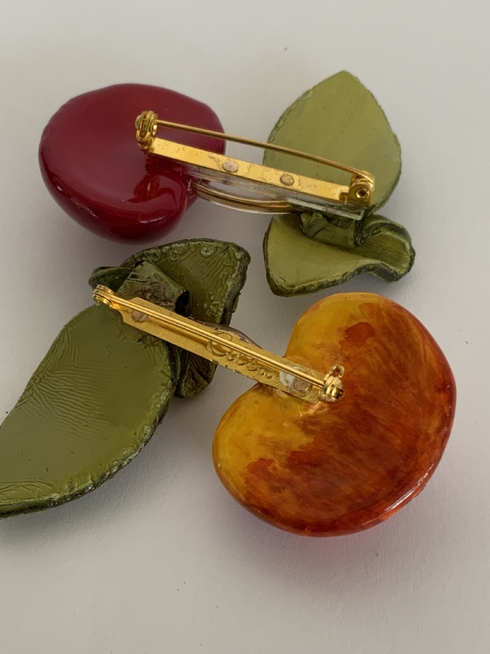 Cilea Paris fruit pins. One is signed.