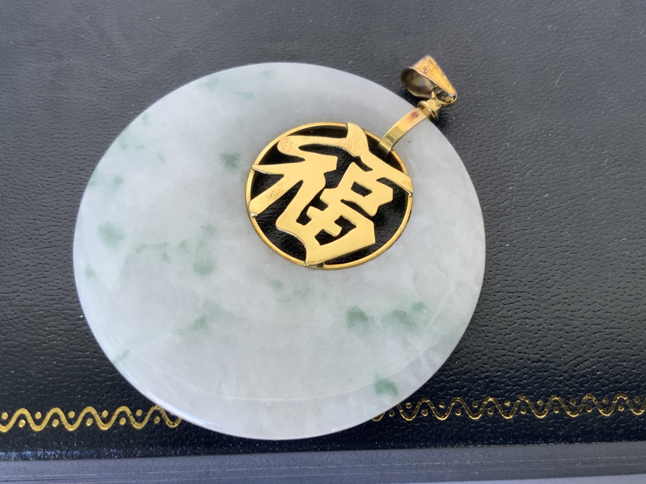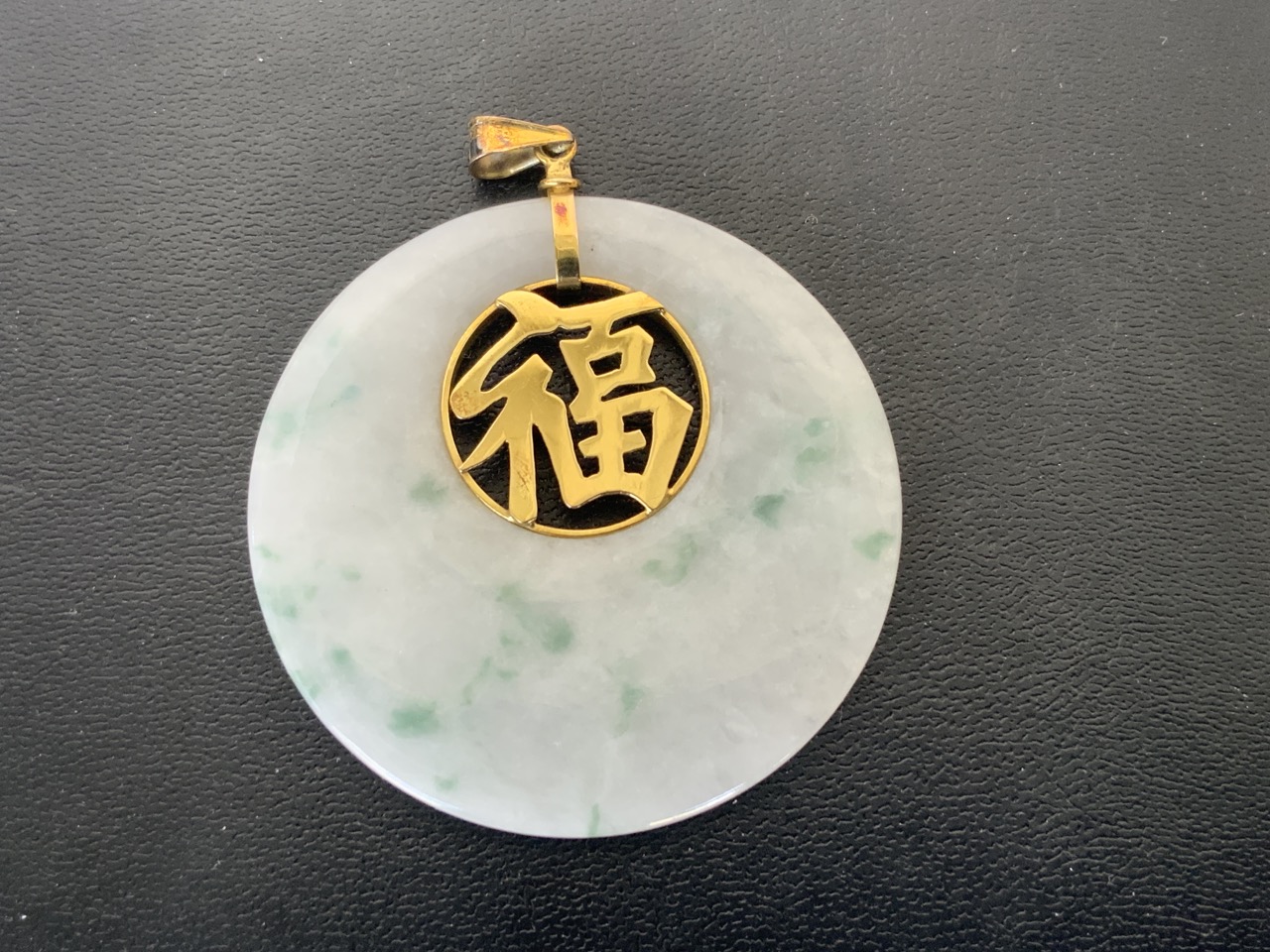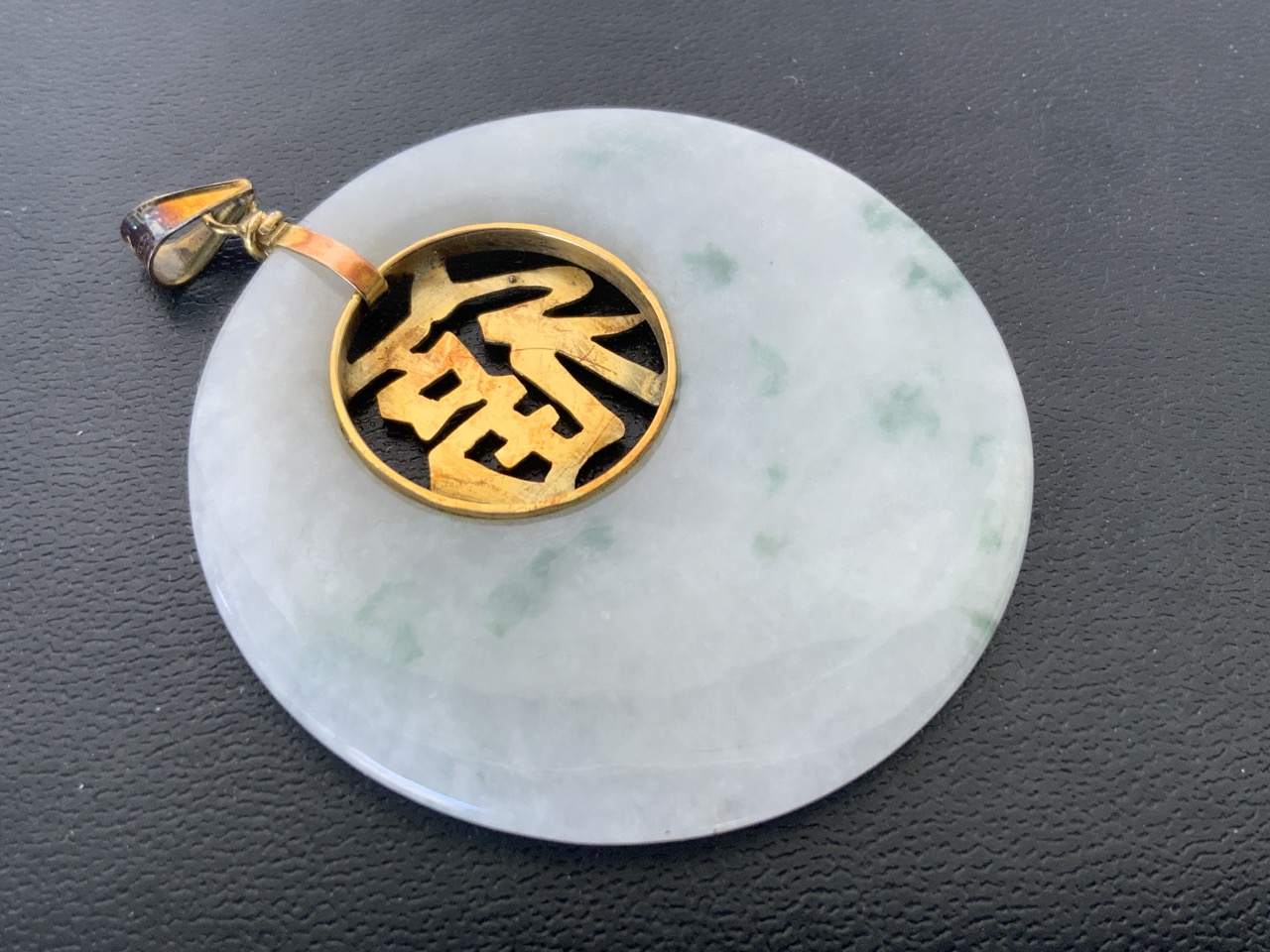 Jack Gutschneider 14K Gold Jade Disc pendant.
