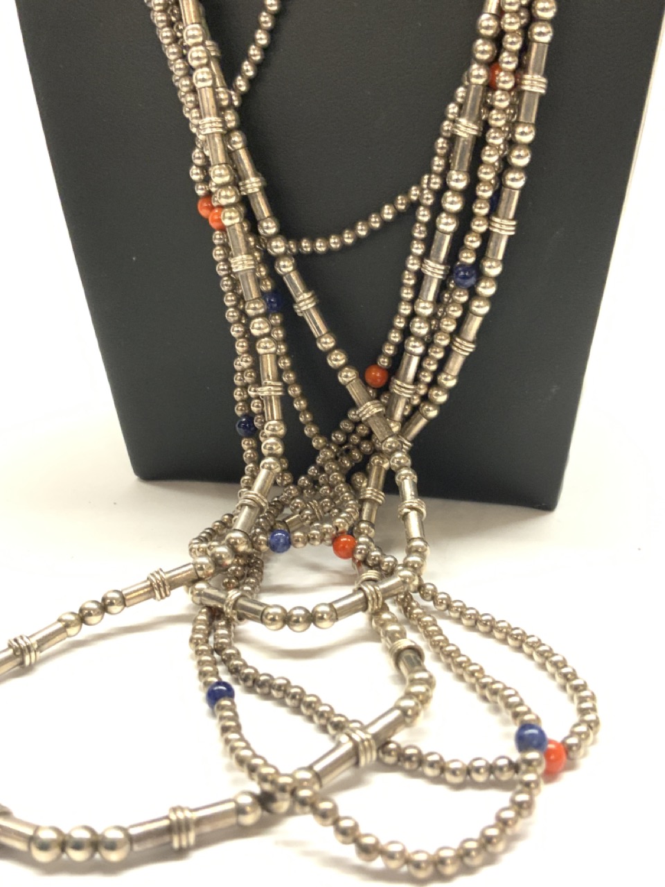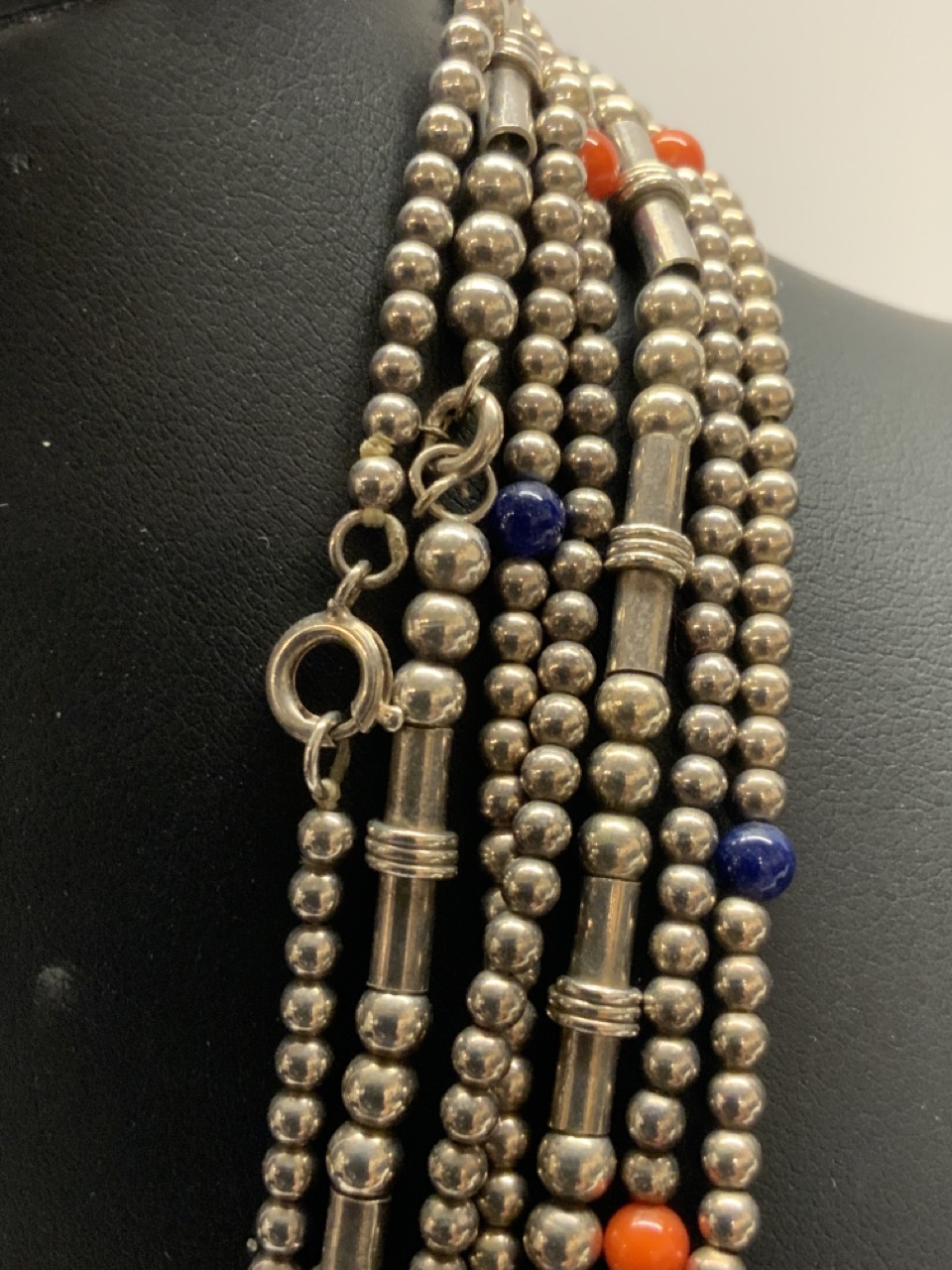 One having coral and other lapis.