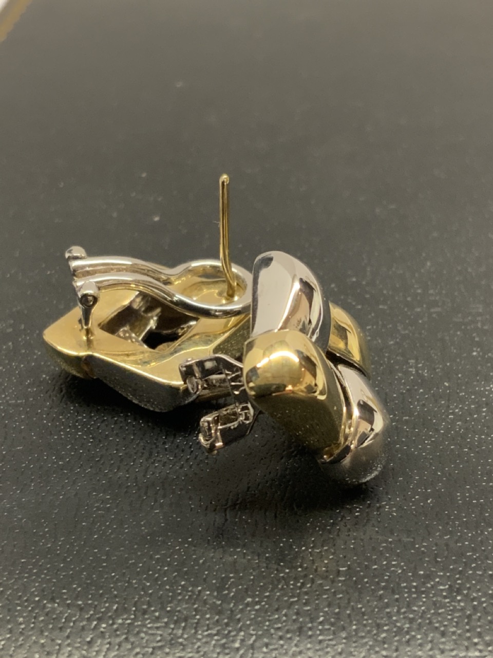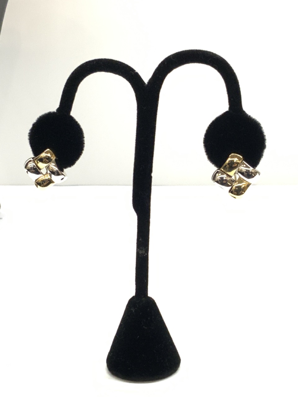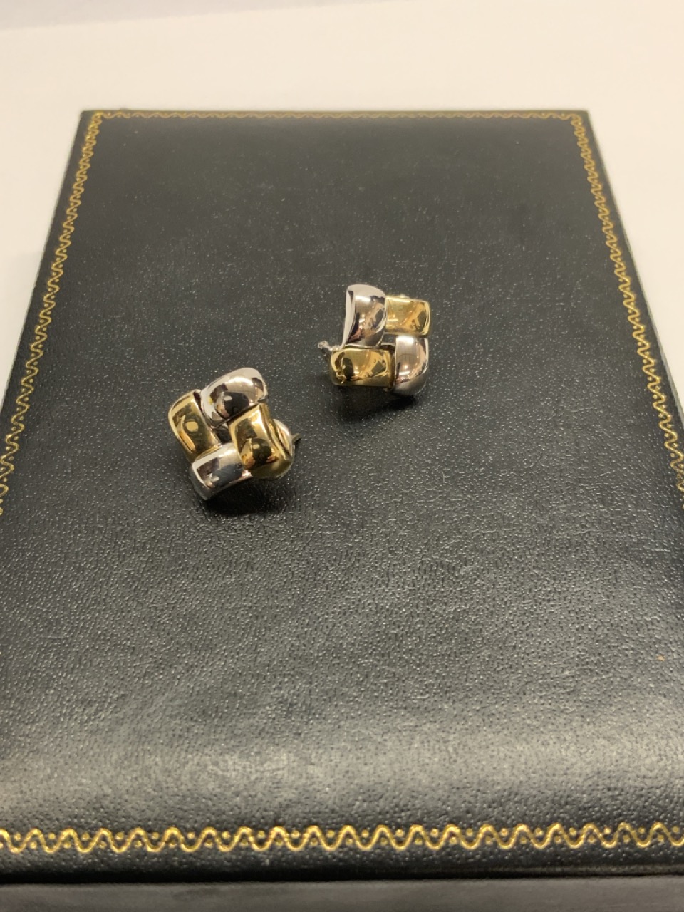 A nice pair of 14k yellow and white gold square earrings. Pierced.