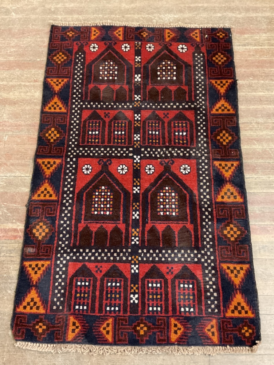 Afghanistan hand knotted prayer rug.