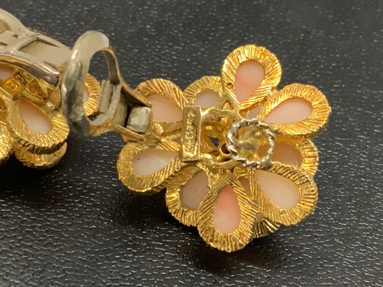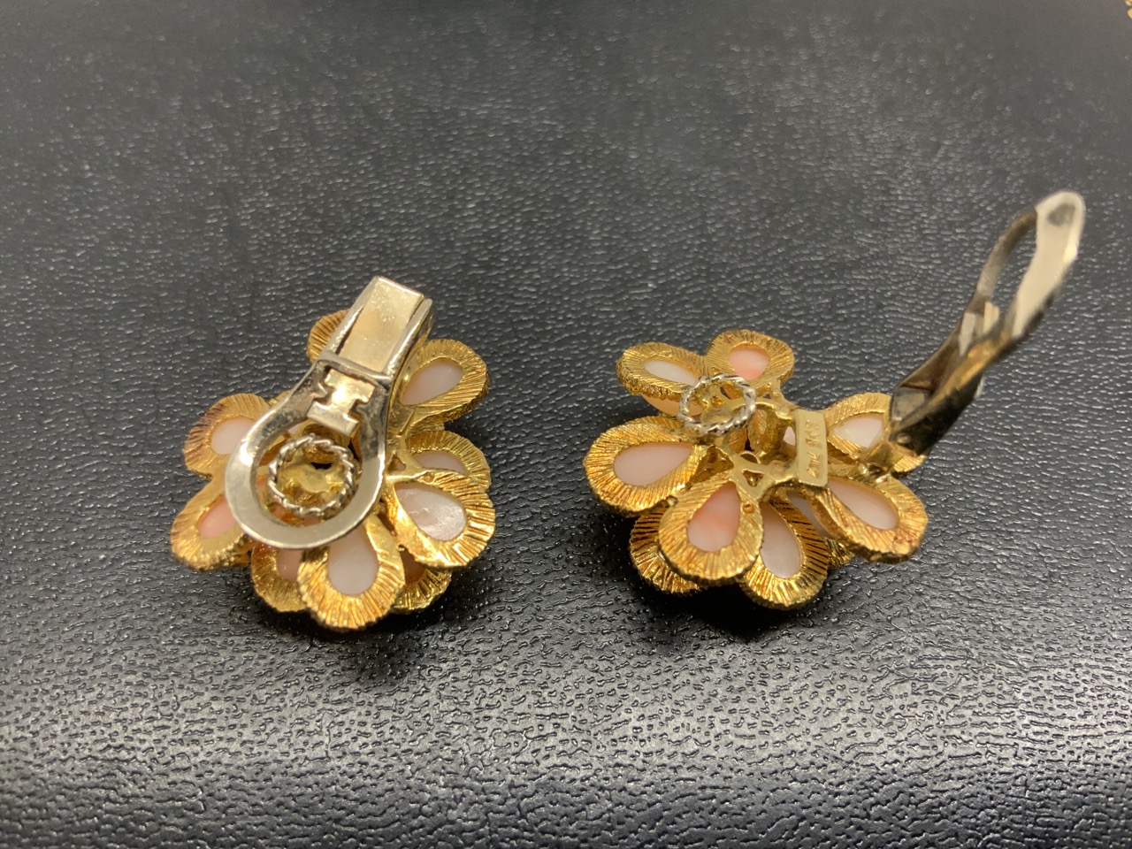 18K y.g Coral Earrings .