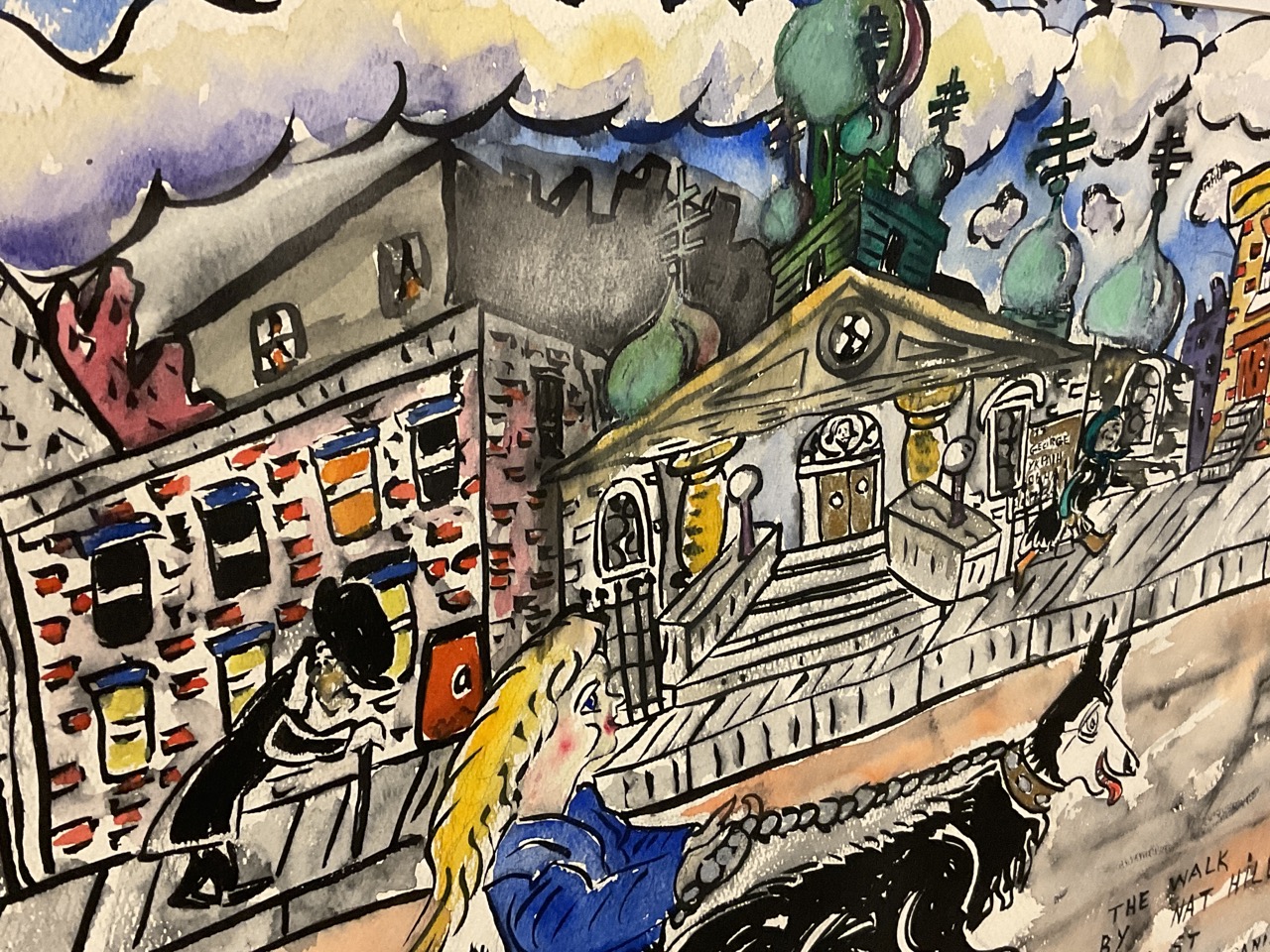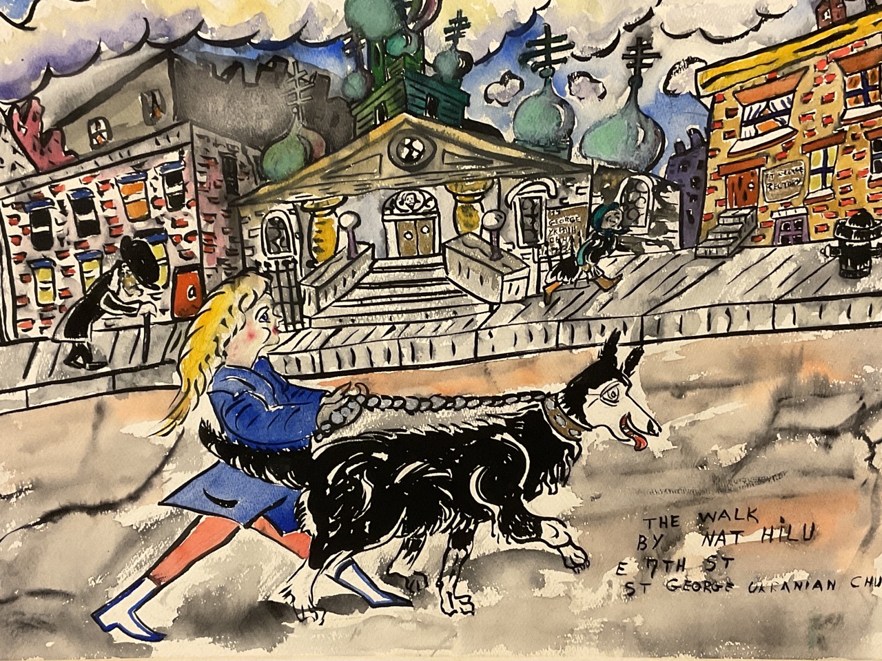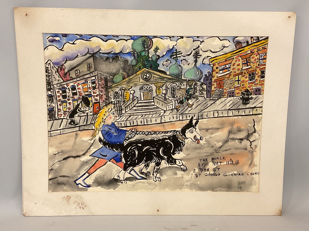 Nathan Hilu Signed “The Walk. E. 7th Street. St. George Ukrainian Church” Watercolor on Paper Painting