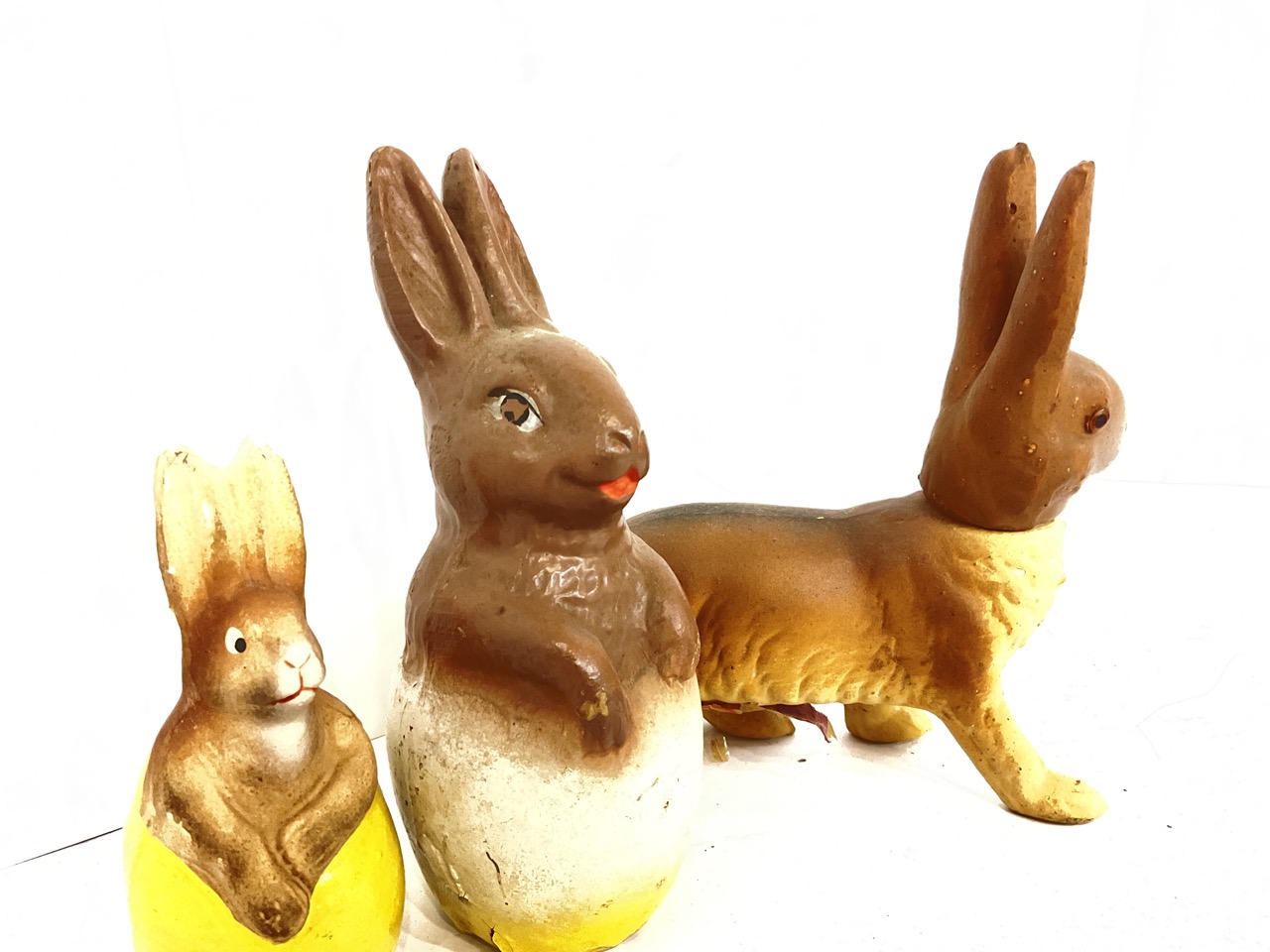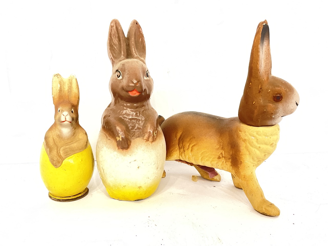 Three (3) Vintage Easter Bunny Candy Containers.