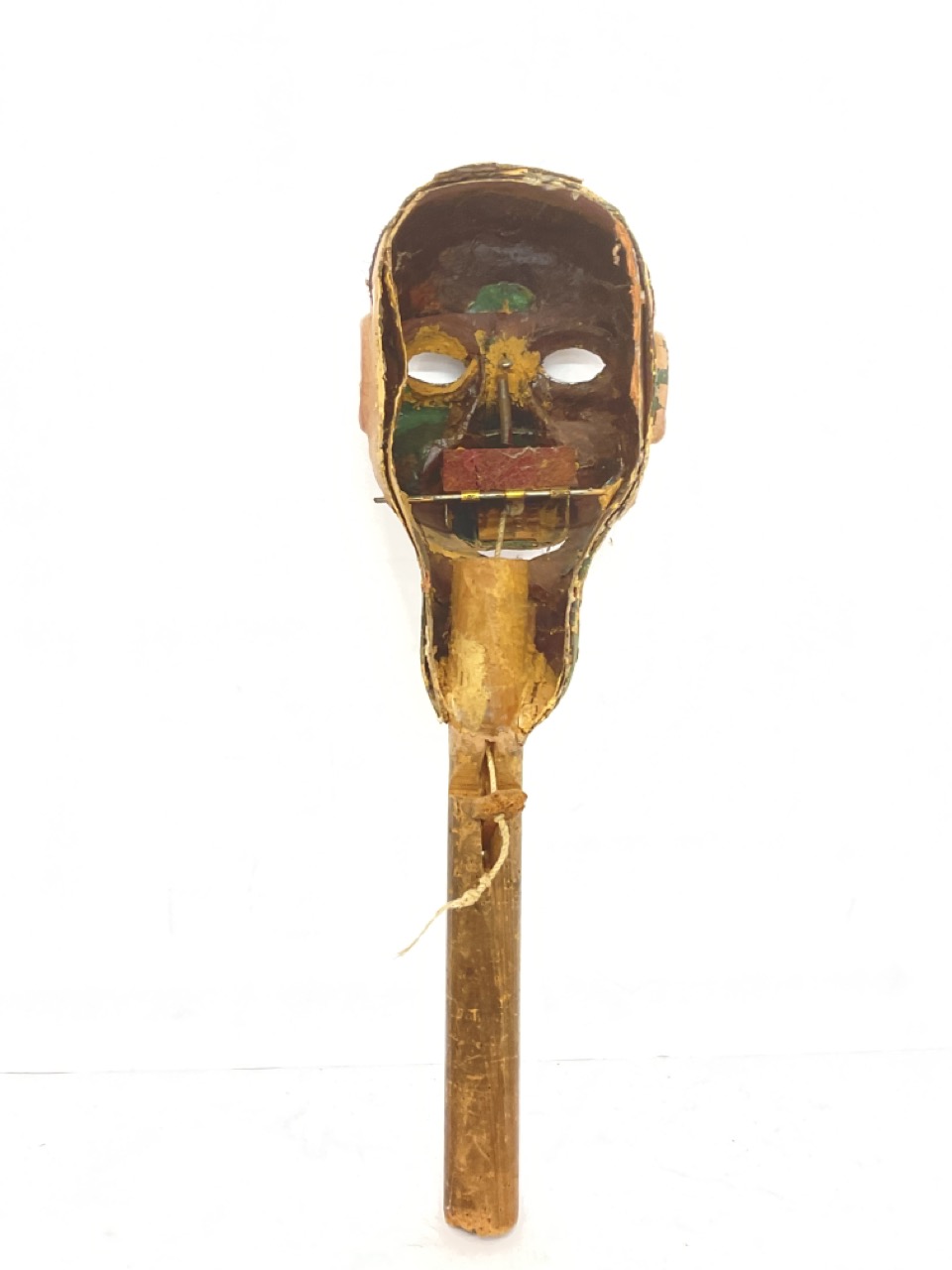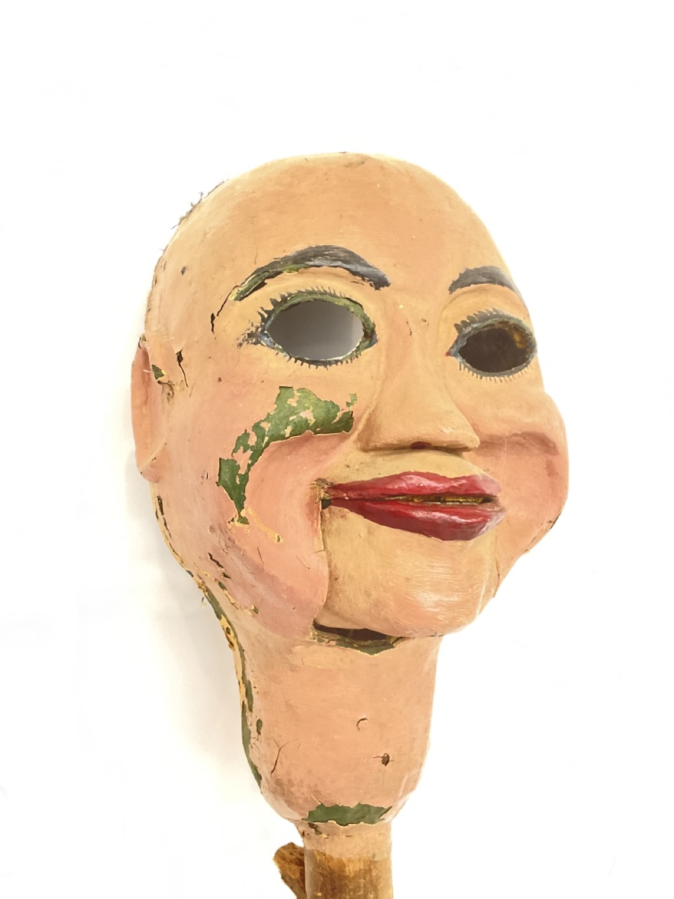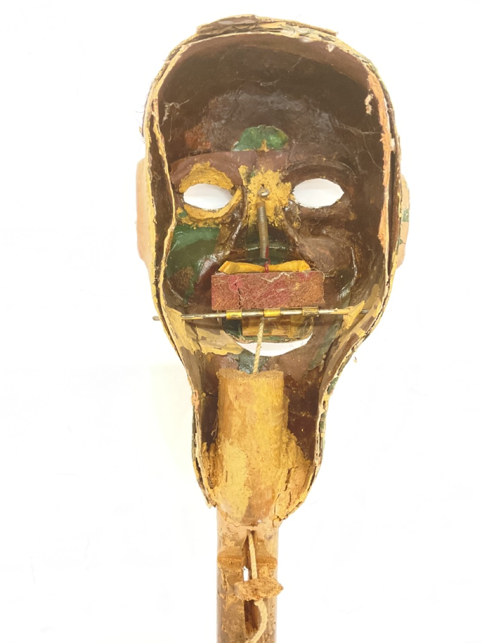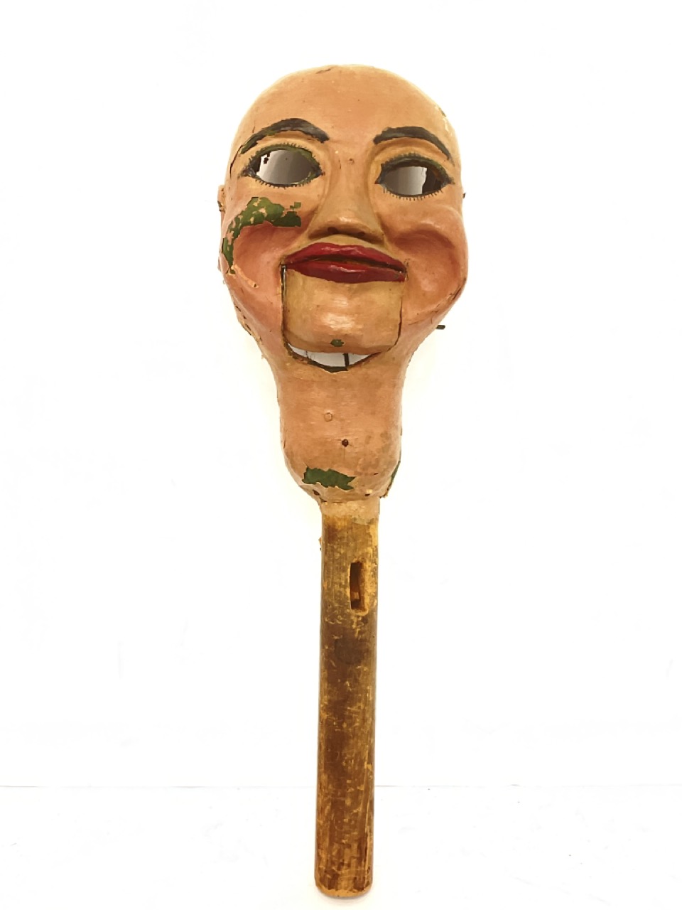 An early 20th century Ventriloquist toy doll head and rod