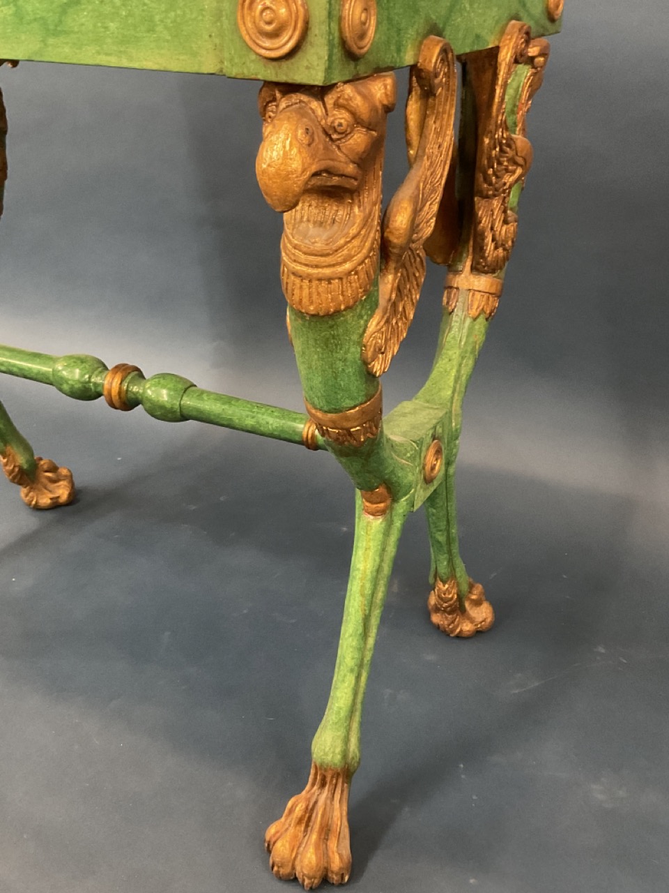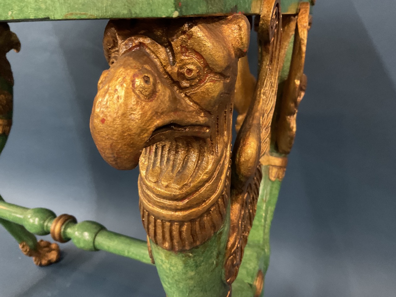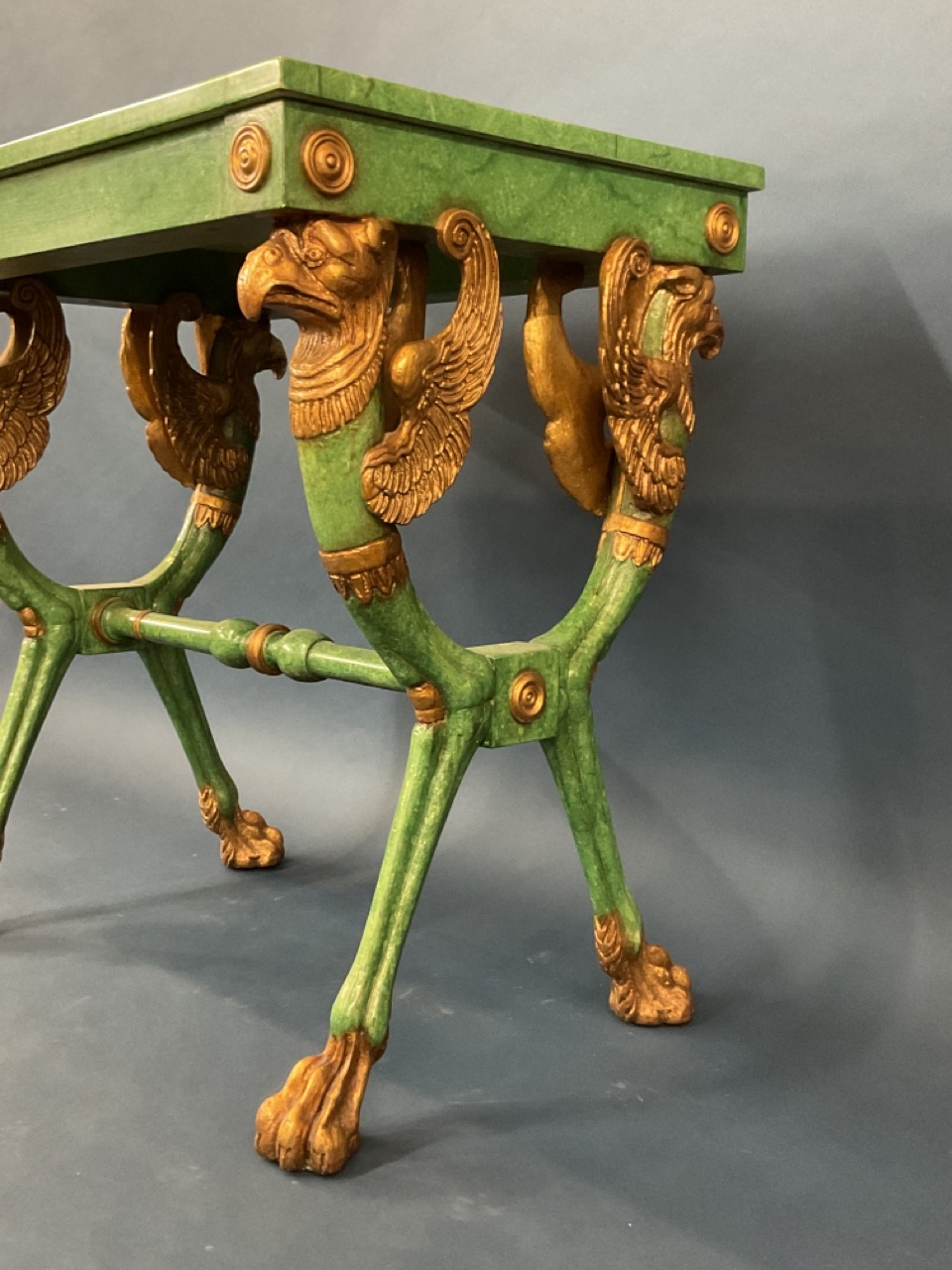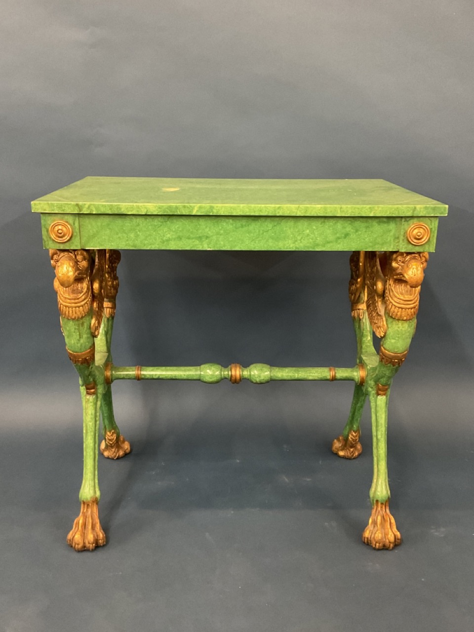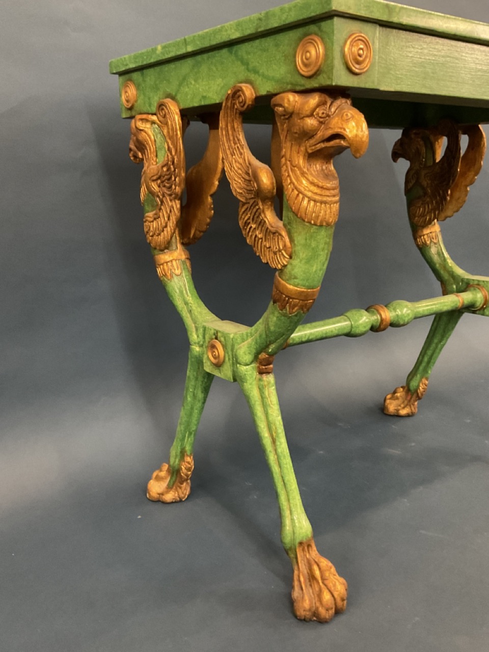 Egyptian Revival style gilt wood and green painted table.