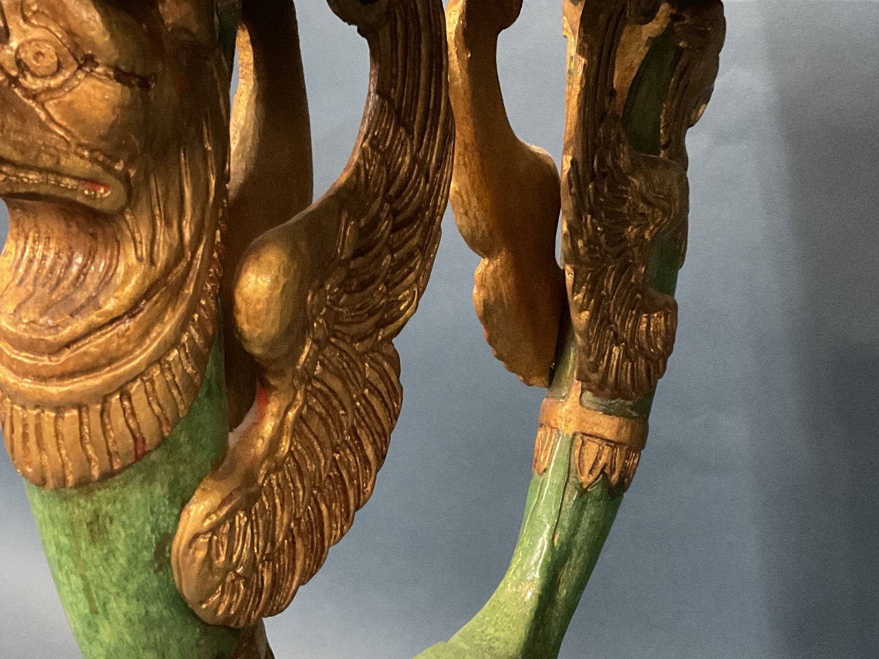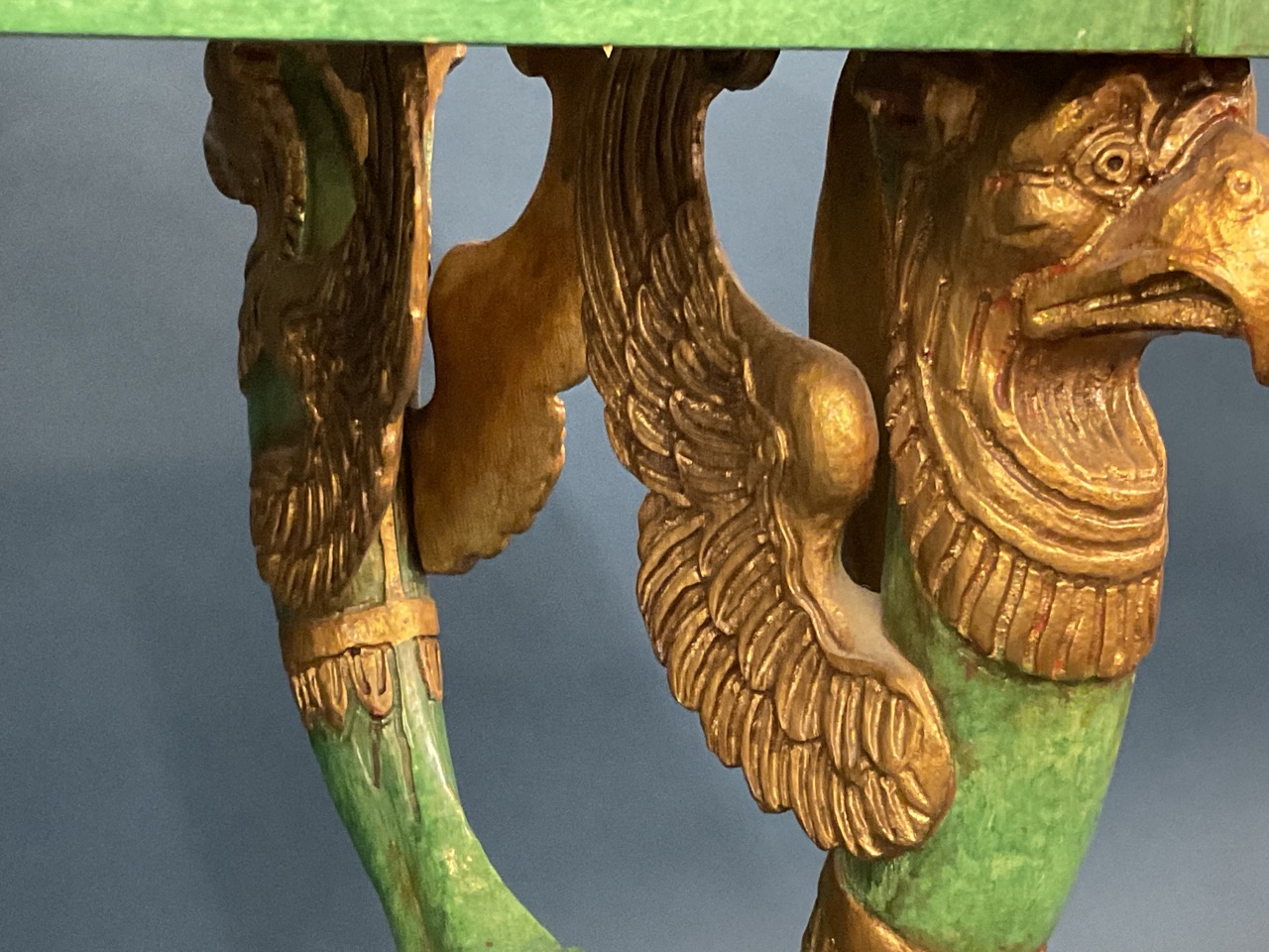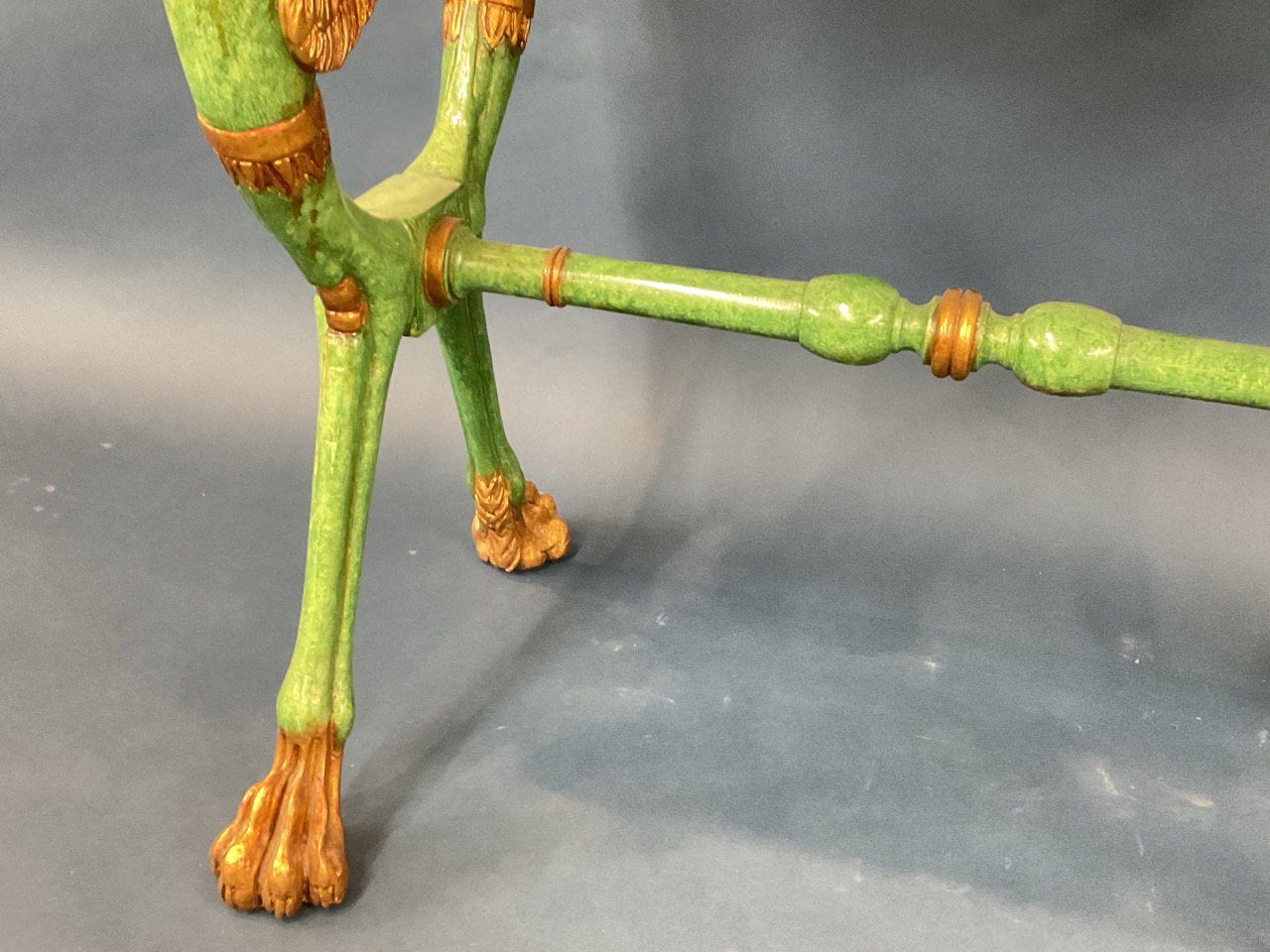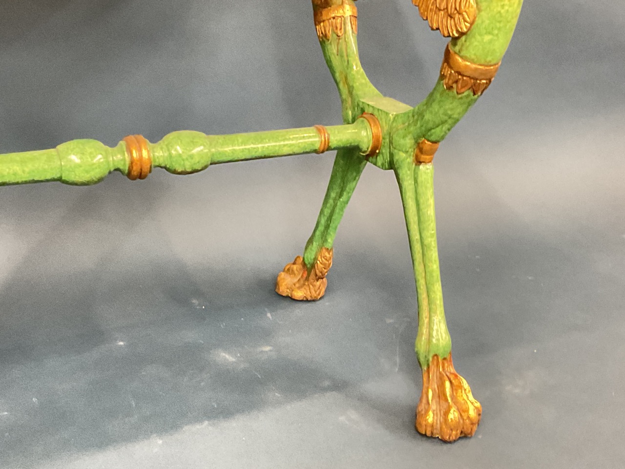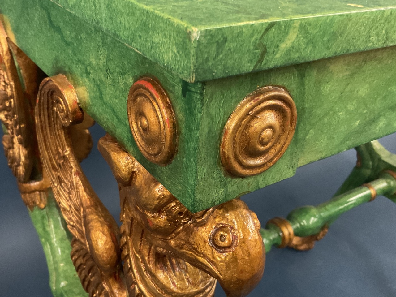 Egyptian Revival style gilt wood and green painted table.