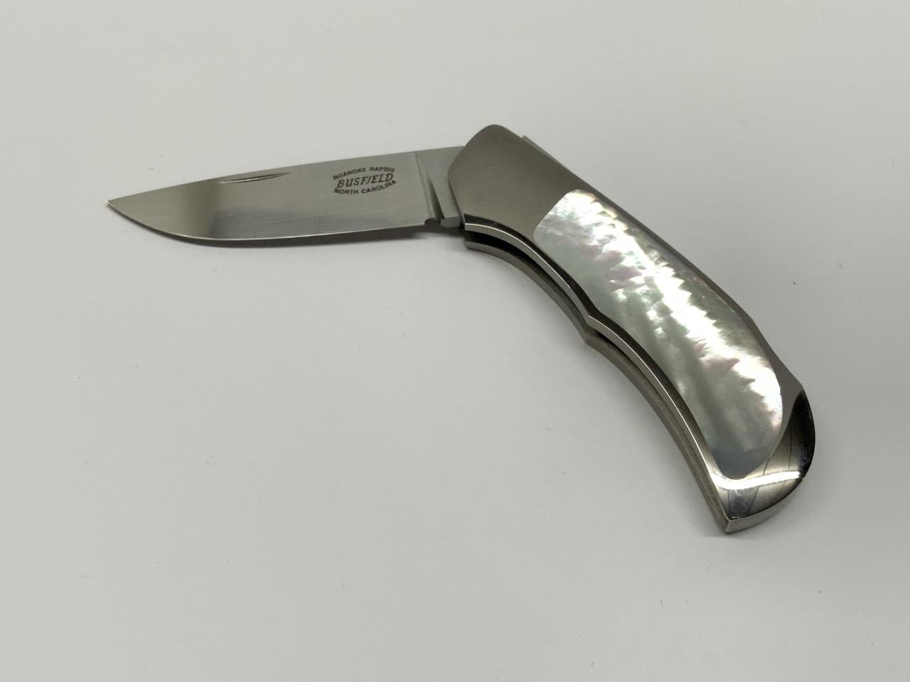 Jack Busfield folding knife with mother of pearl handle.
