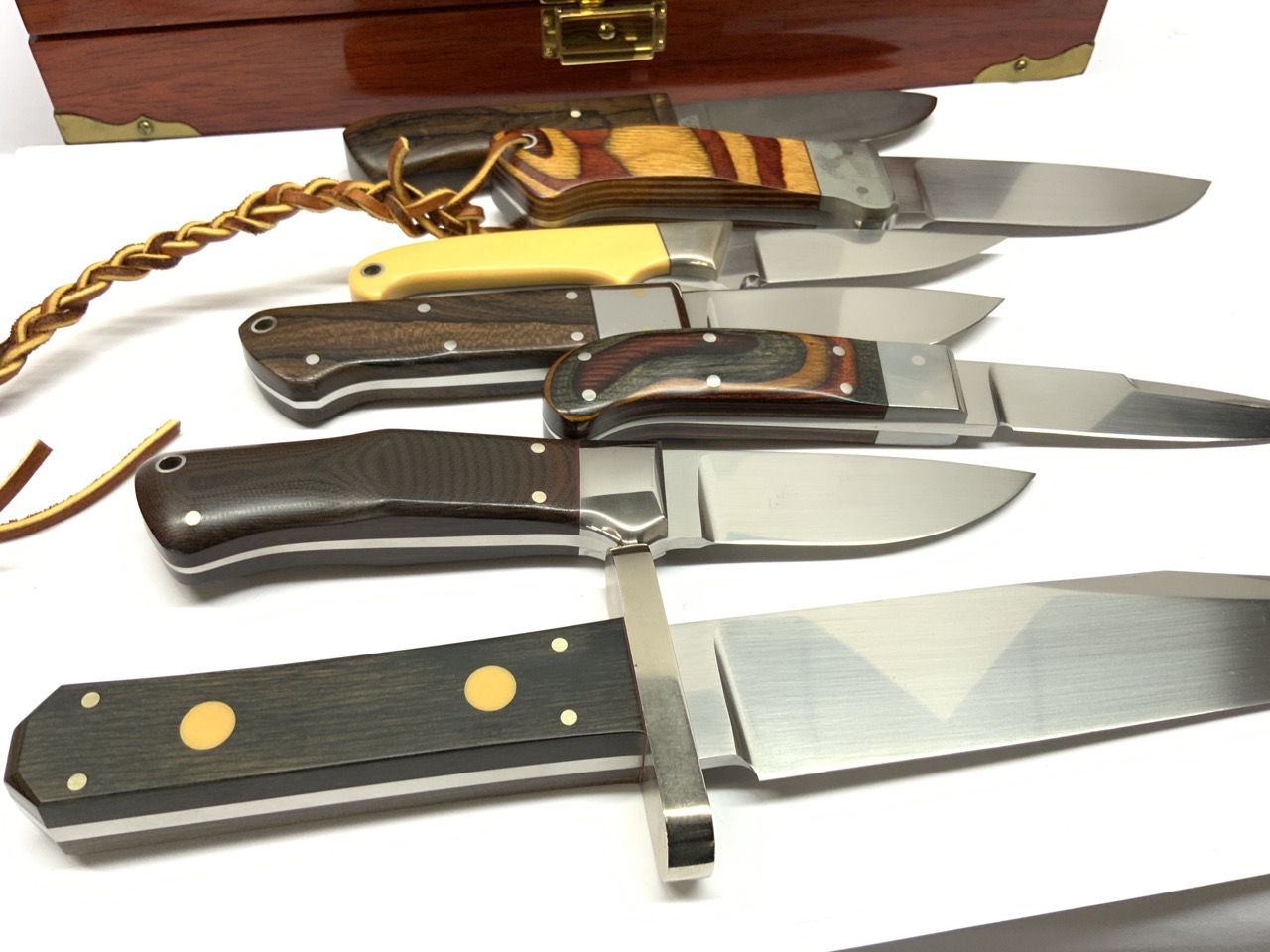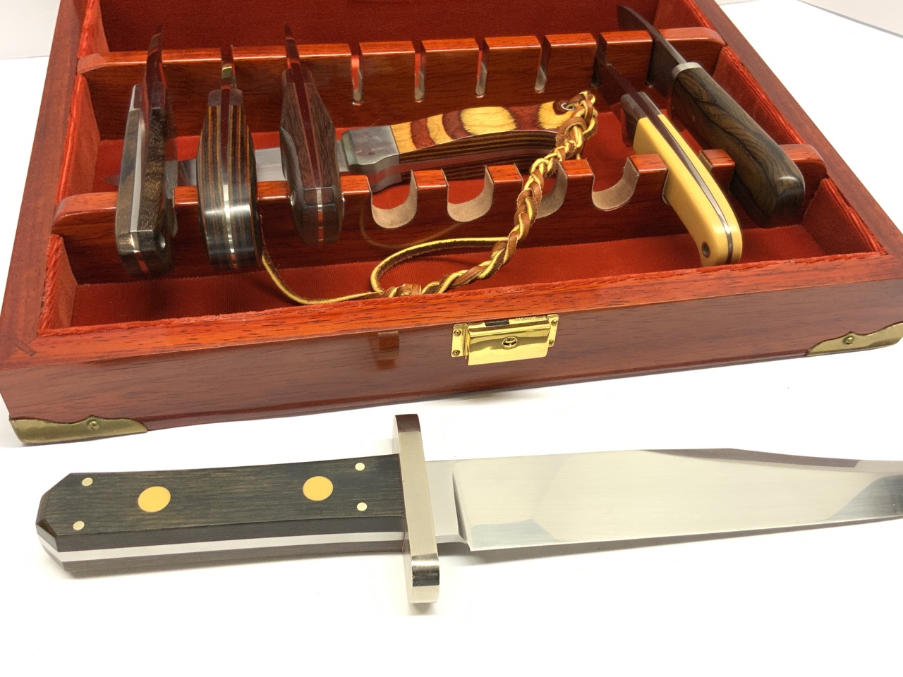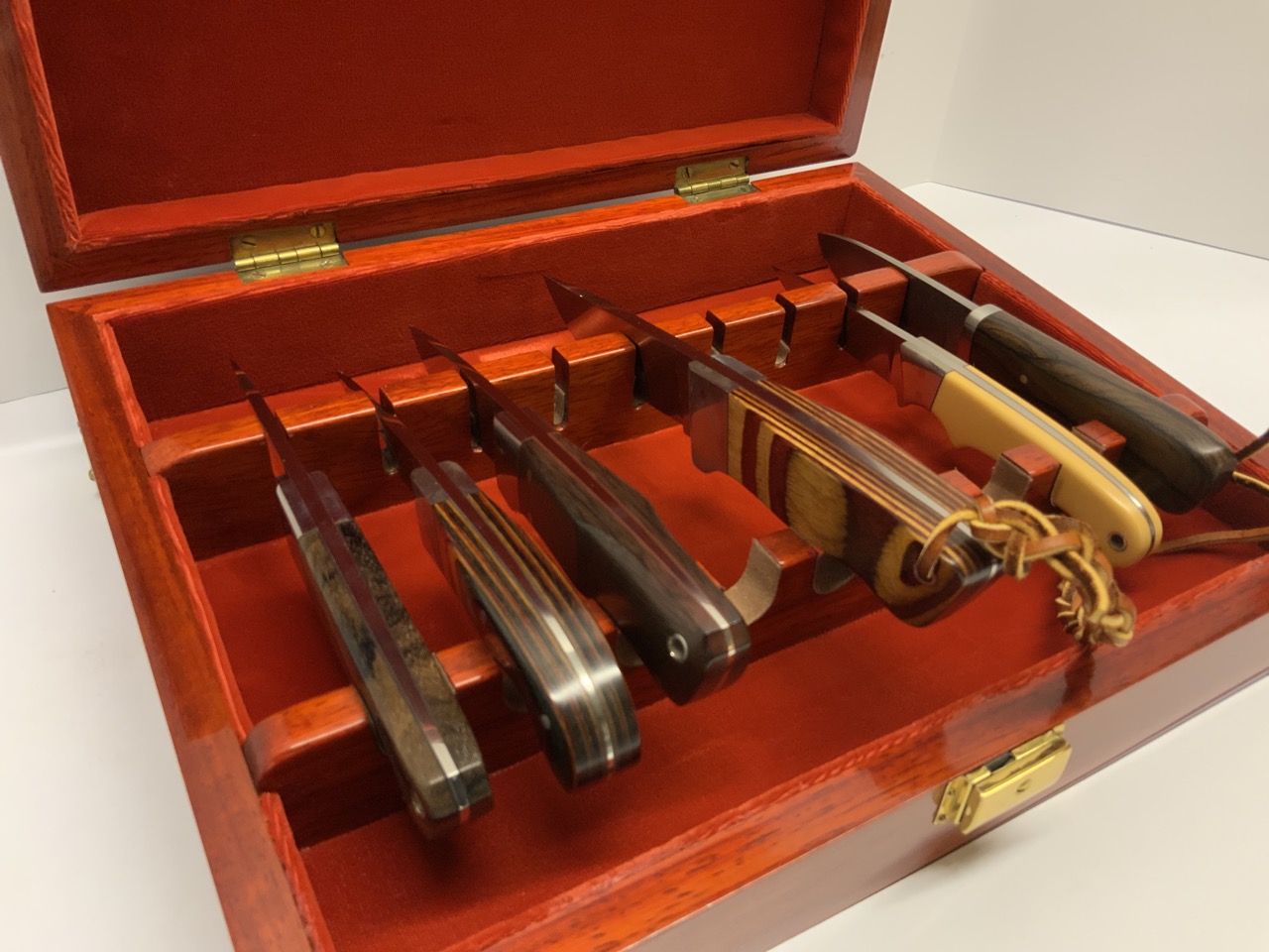 Seven (7) piece custom knife collection with case to house smaller knives..