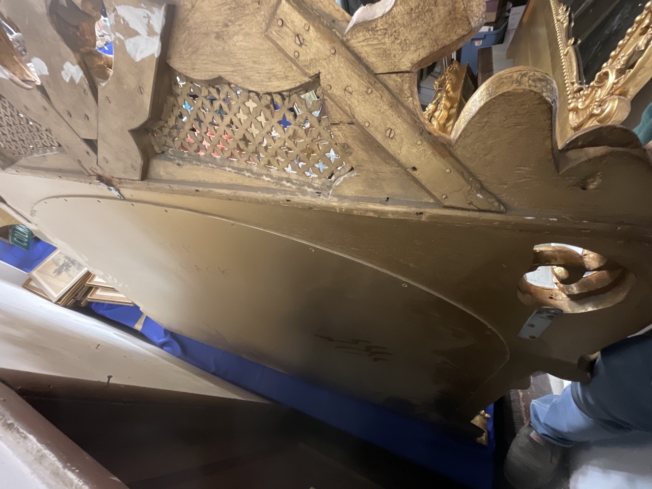 Piece of frame broke off towards top of mirror. See pictures for review. Overall good.