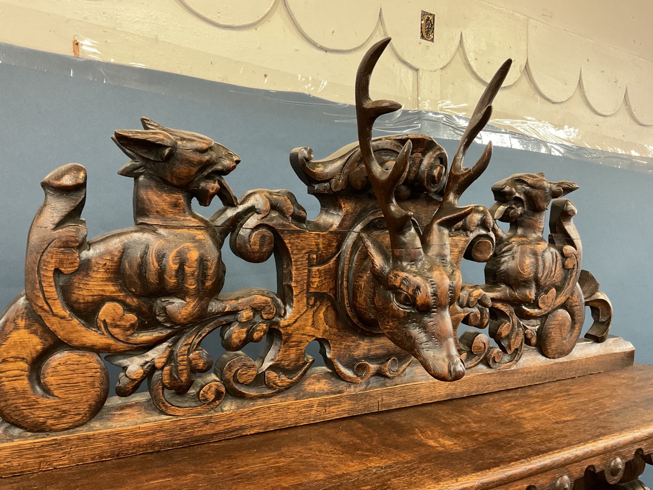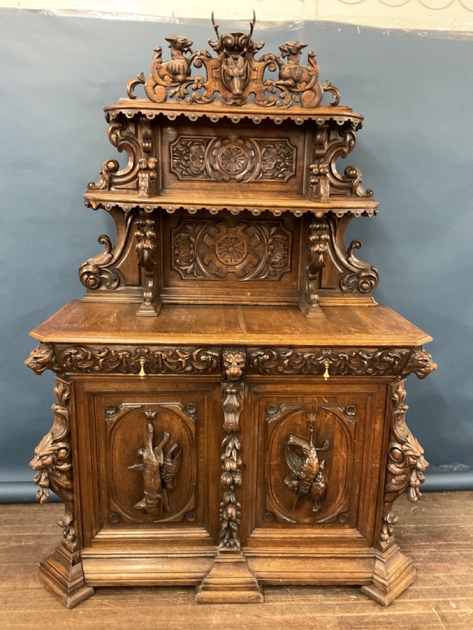 Heavily carved 19th century French Hunt Cabinet.