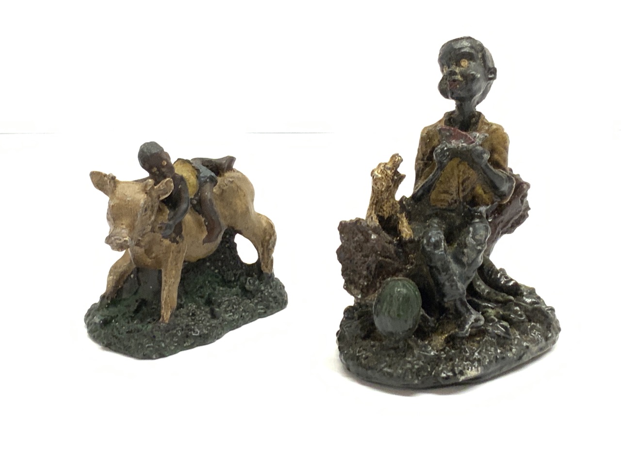 Early 1900's Black Americana solid cast lead figures. Dimensions: 2 1/2” and 4” heights