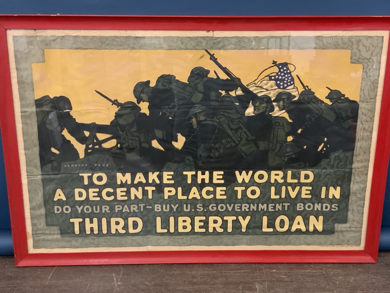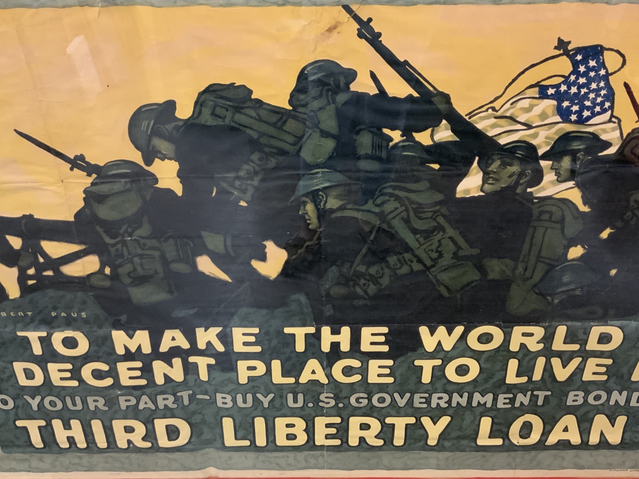 Herbert PAUS "To make the world a decent place to live in do your part u US government bonds" Third Liberty Loan Niagara Lithograph company Buffalo New York