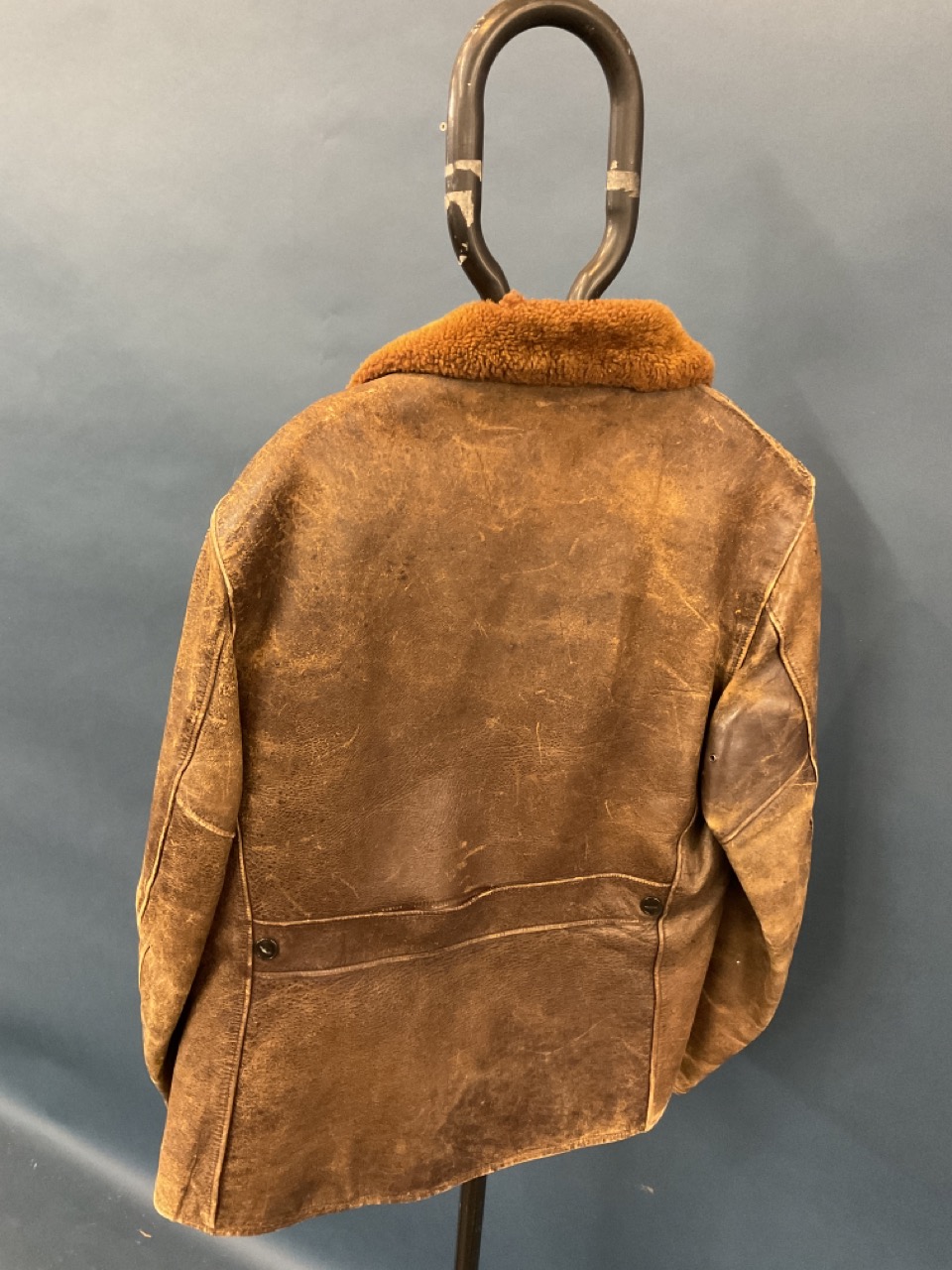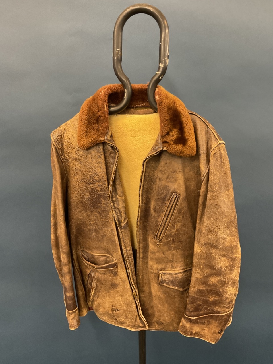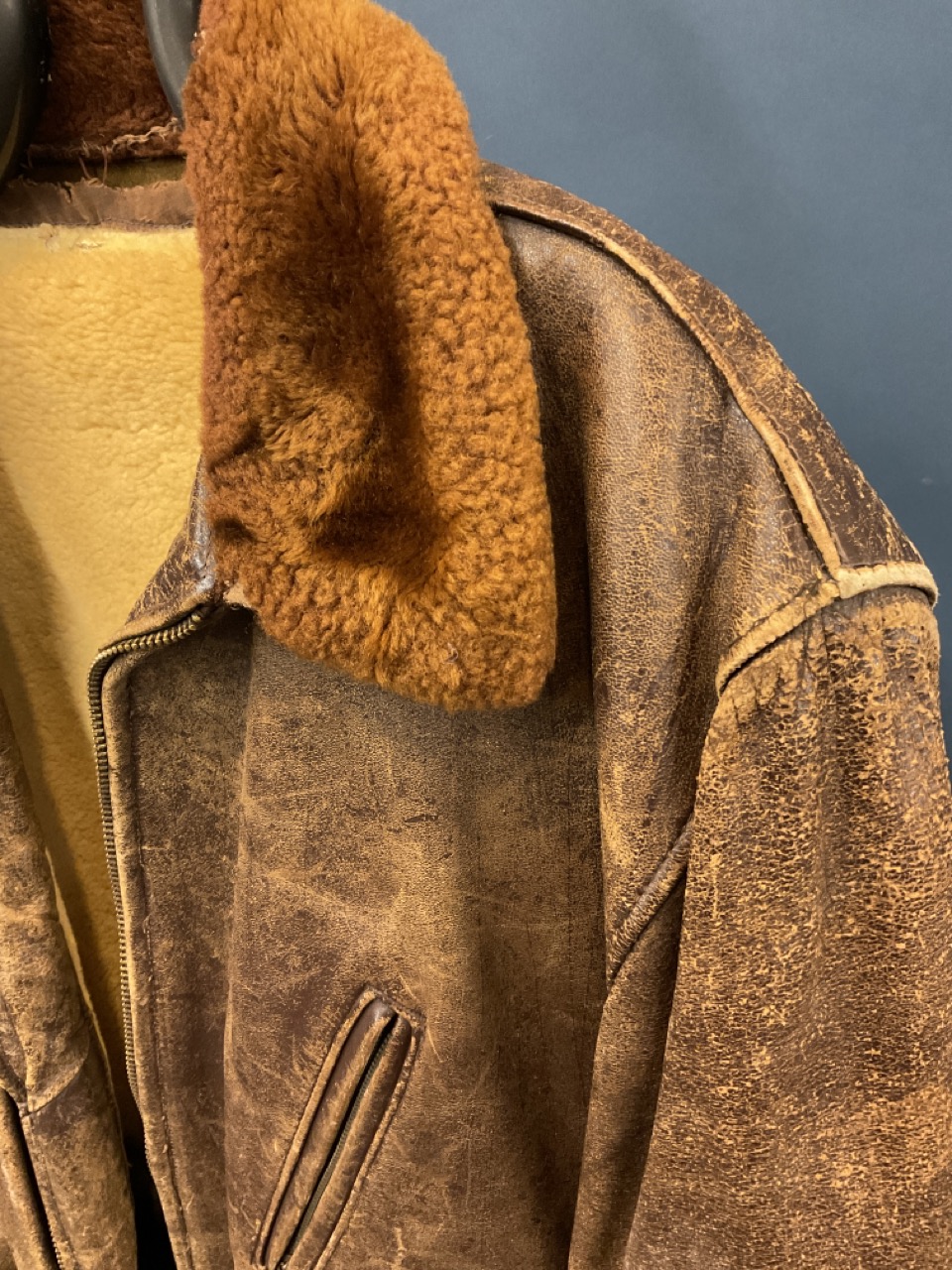 A period WWII leather bomber jacket with shearling lining,