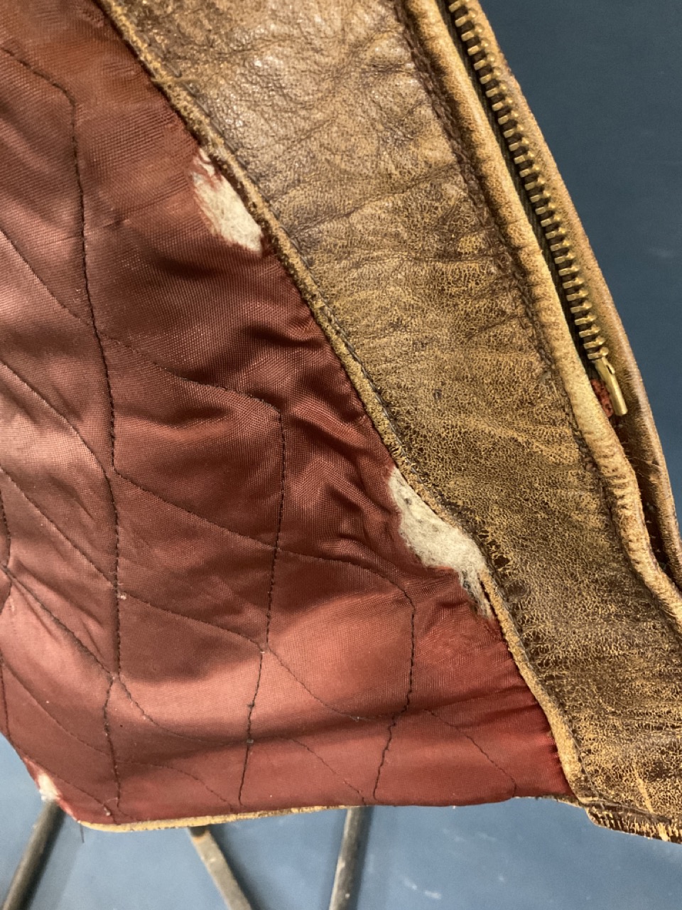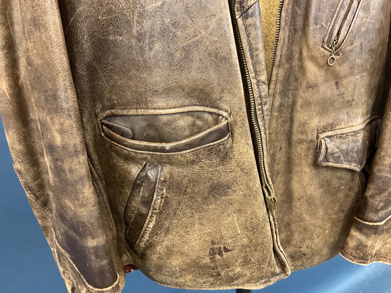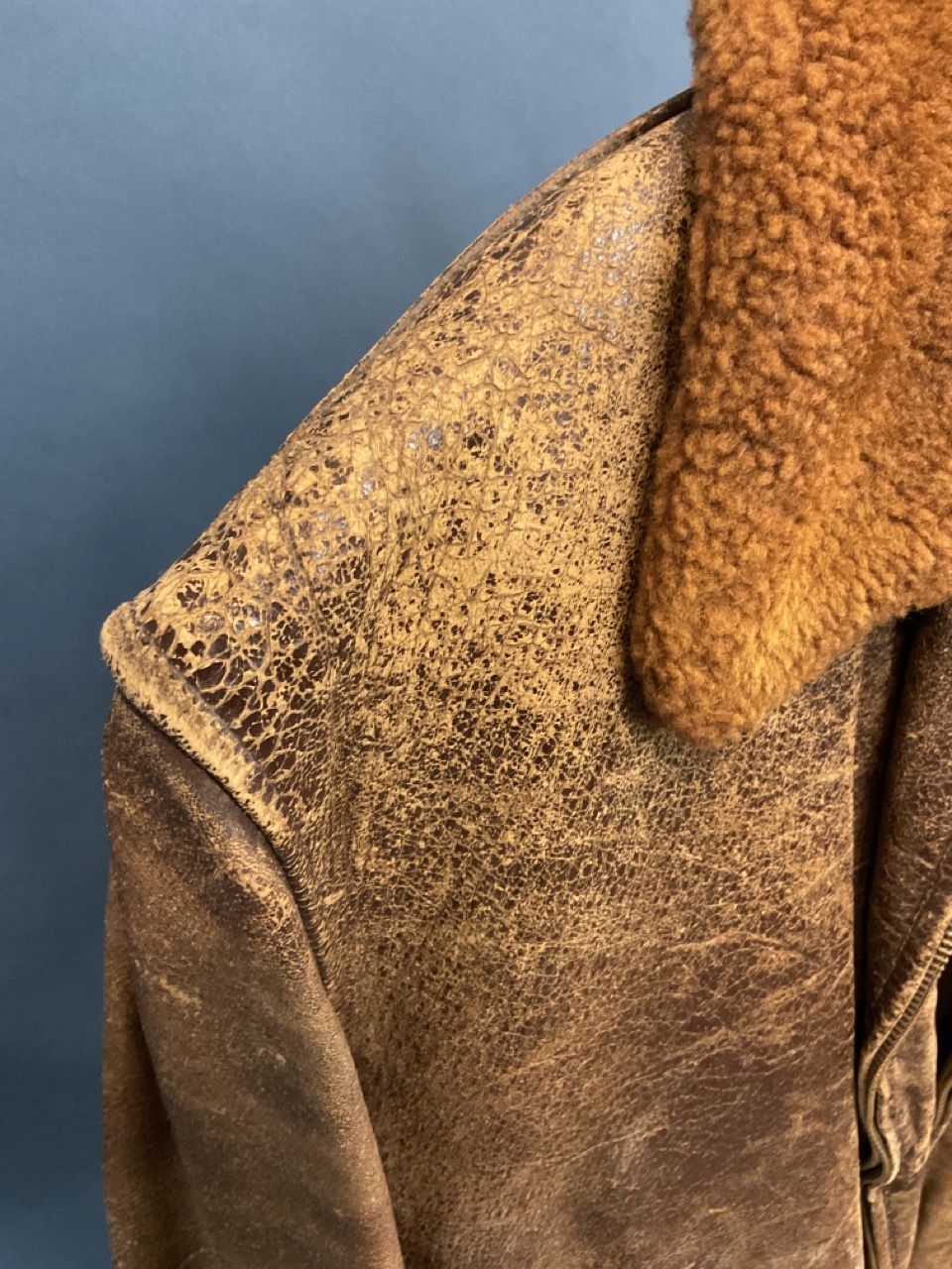 A period WWII leather bomber jacket with shearling lining,