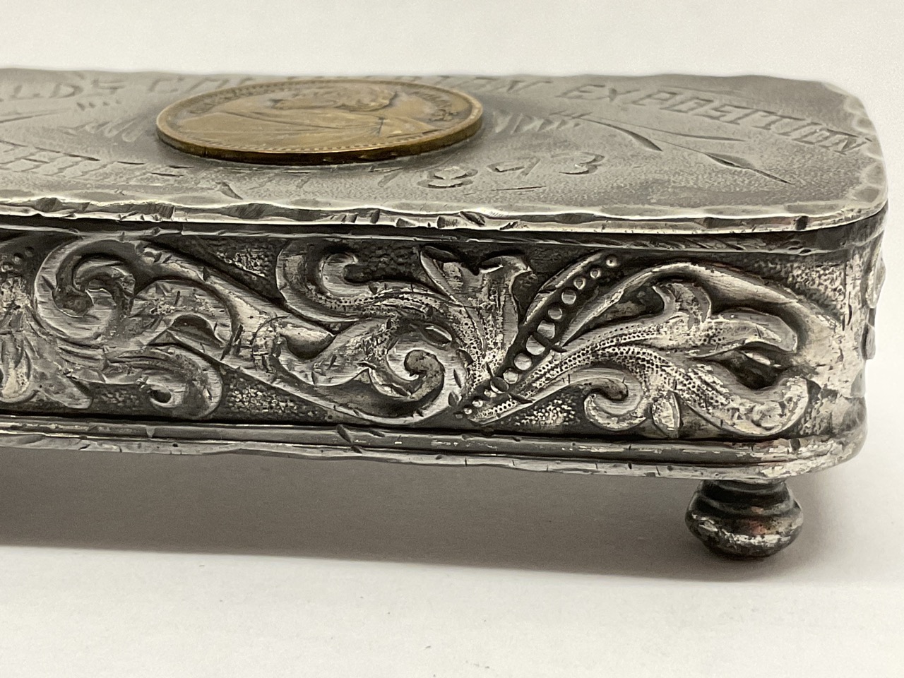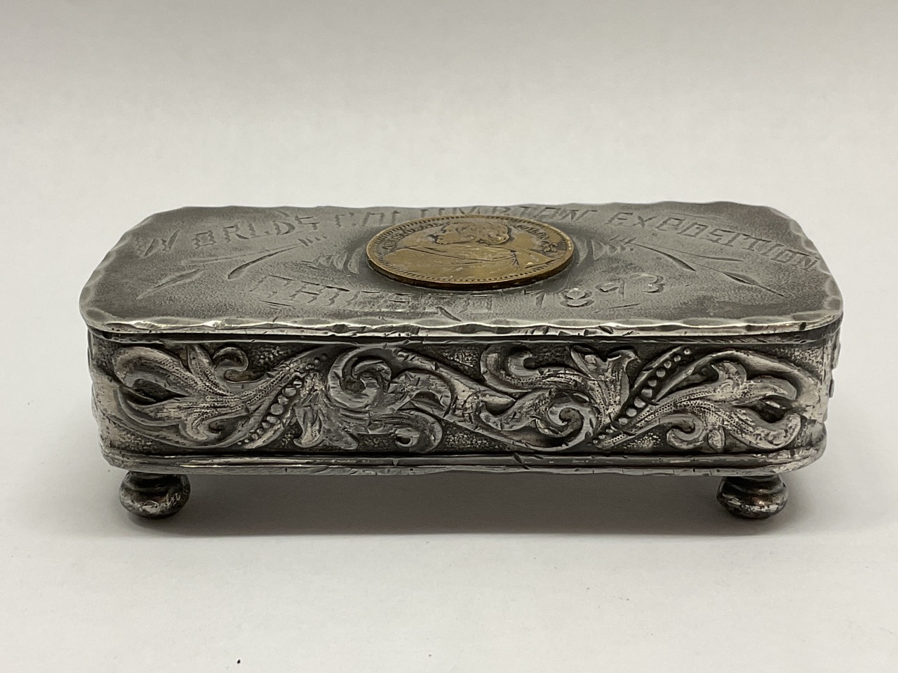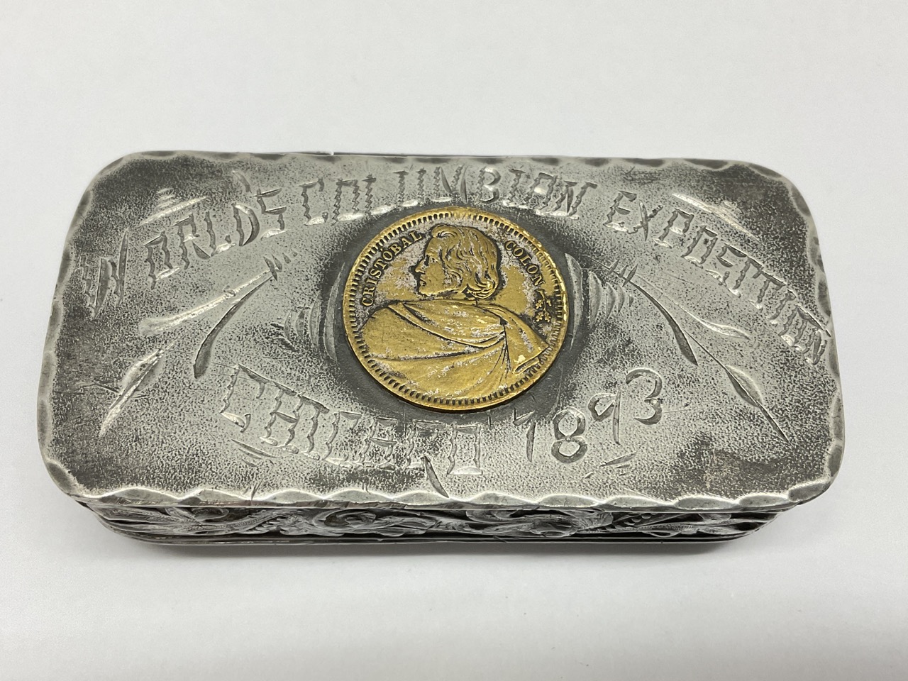 Chicago 1893 World’s Columbia’s Exposition Trinket Box. Probably for receiving hair pins.