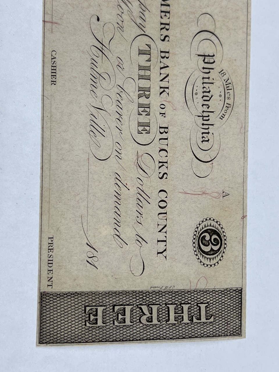 Farmer's Bank Of Bucks County Bank Note, Unused, Early 19th century.