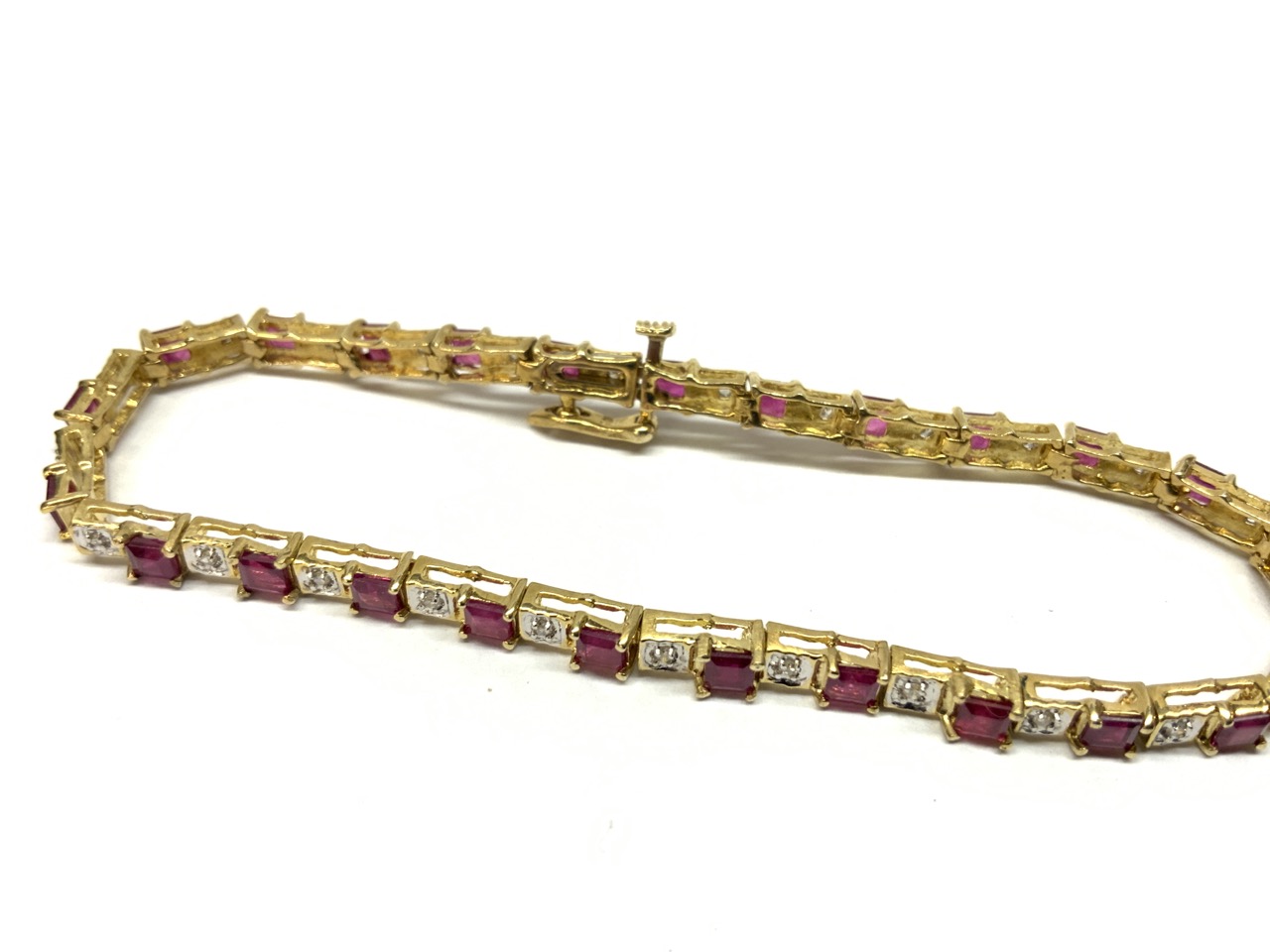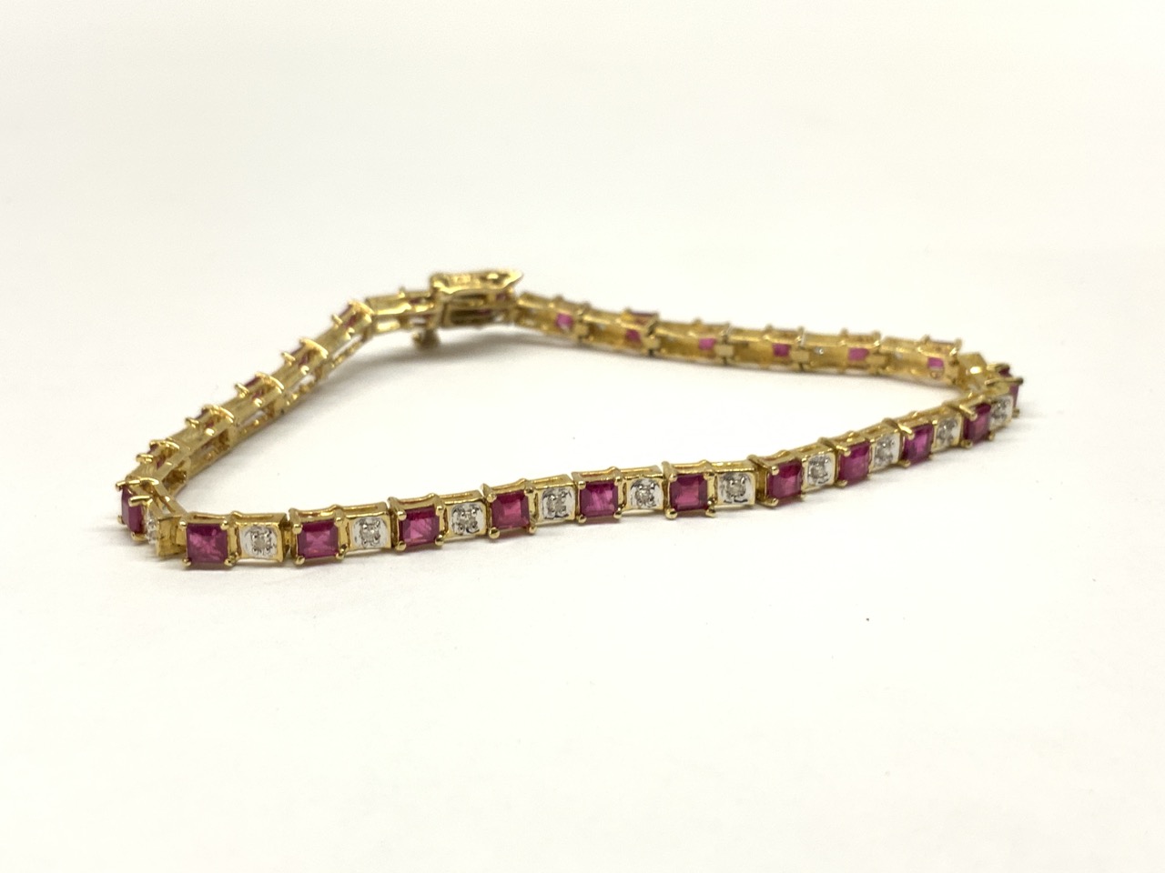 10k yellow gold ruby and diamond bracelet.