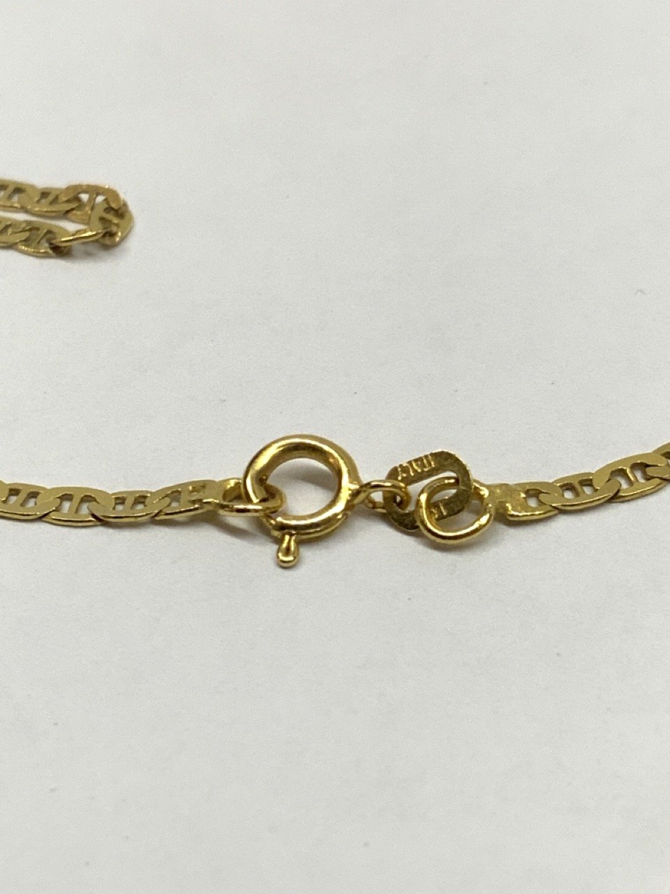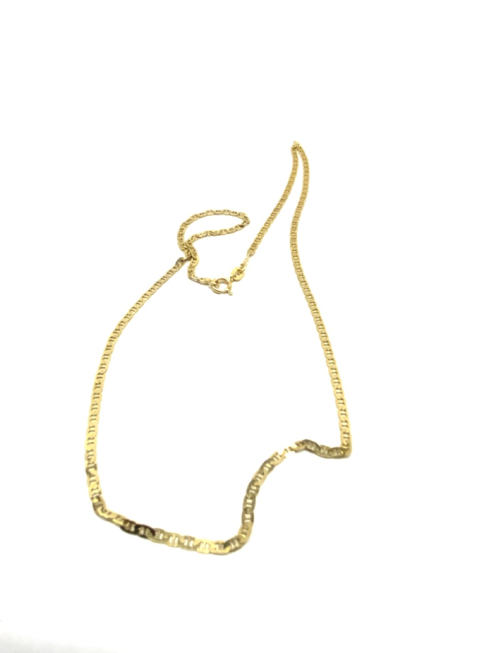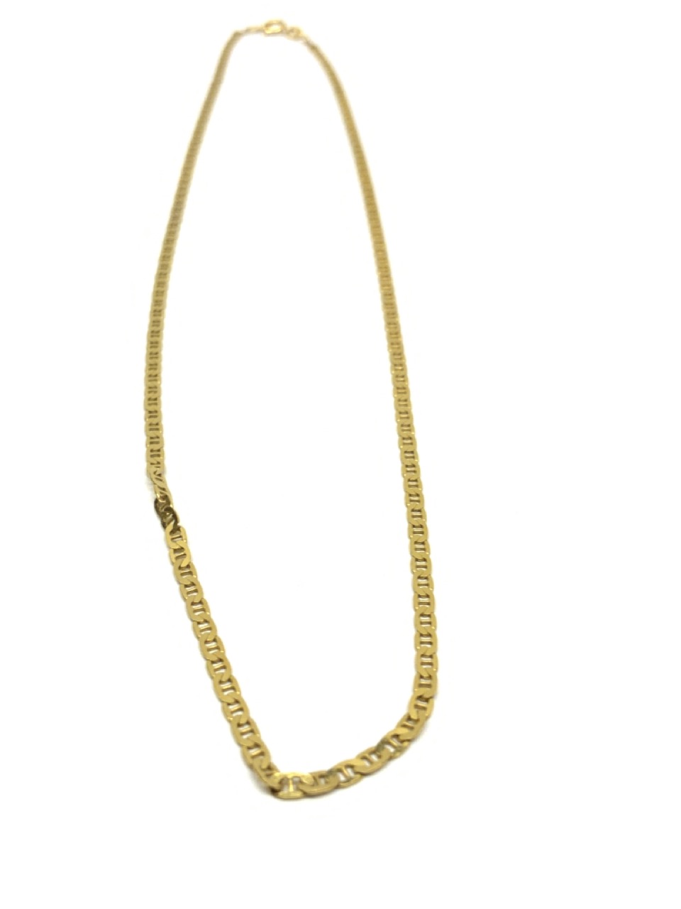 14K yellow gold flat Mariner link chain.