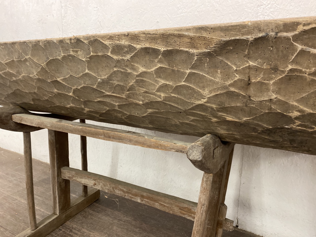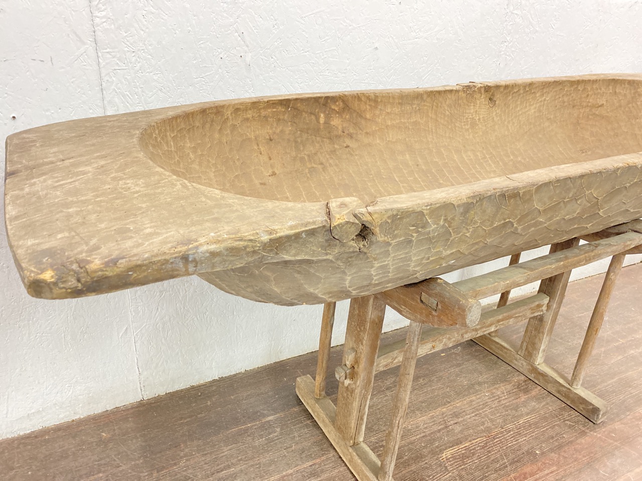 An unusual oversized hand carved dough trough or trench. Married together with a fitting stand.