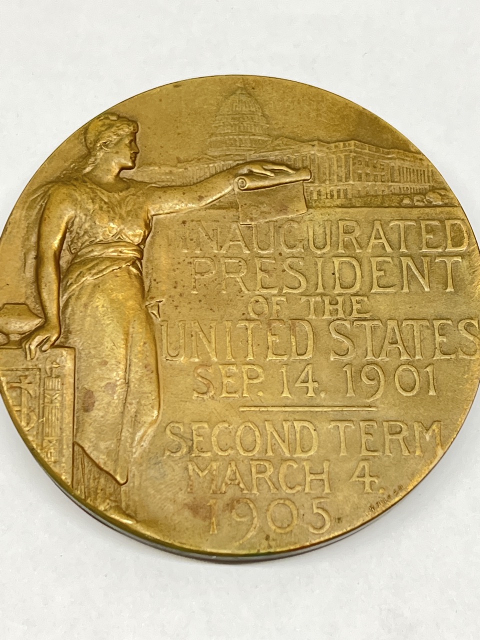 Theodore Roosevelt Inaugural 3" bronze medal.