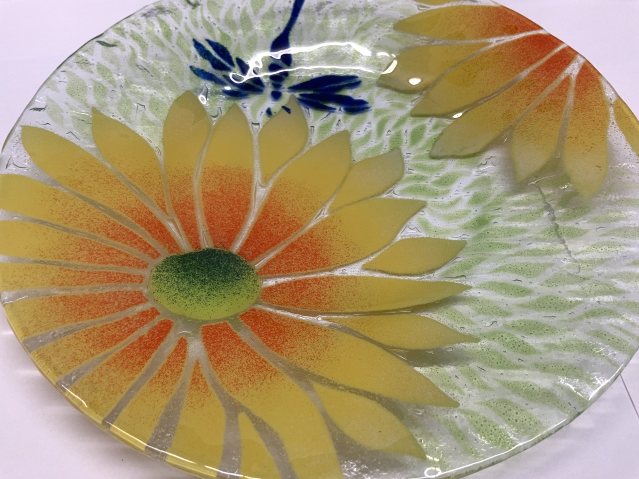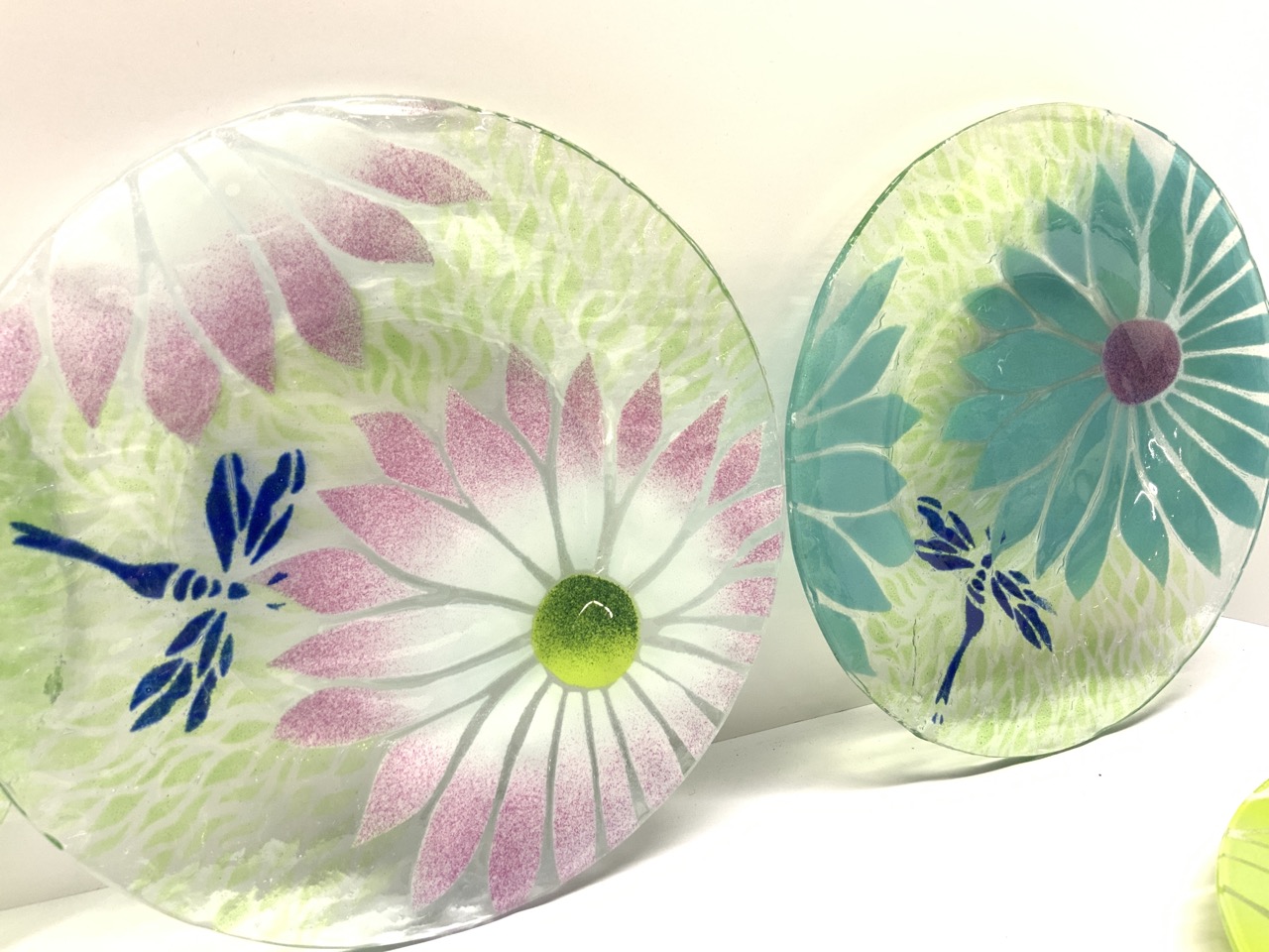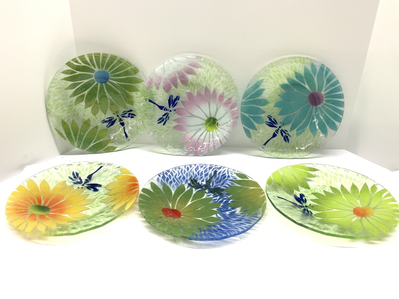 Sydenstricker fused art glass dragonfly lunch plates