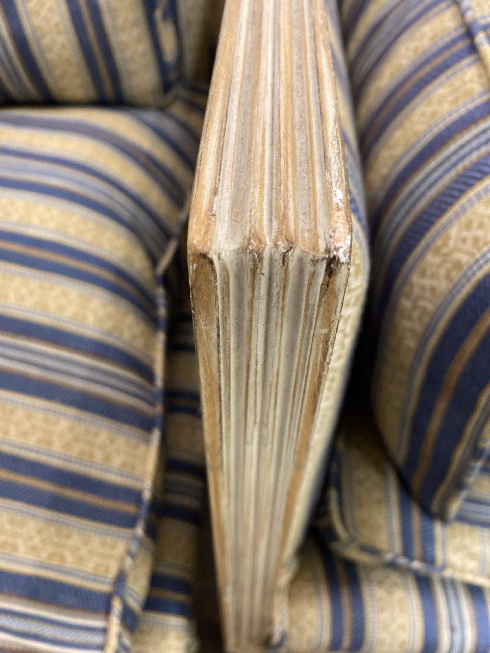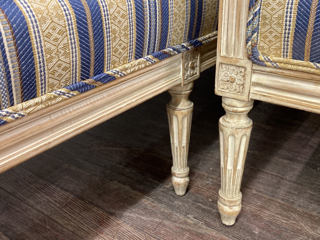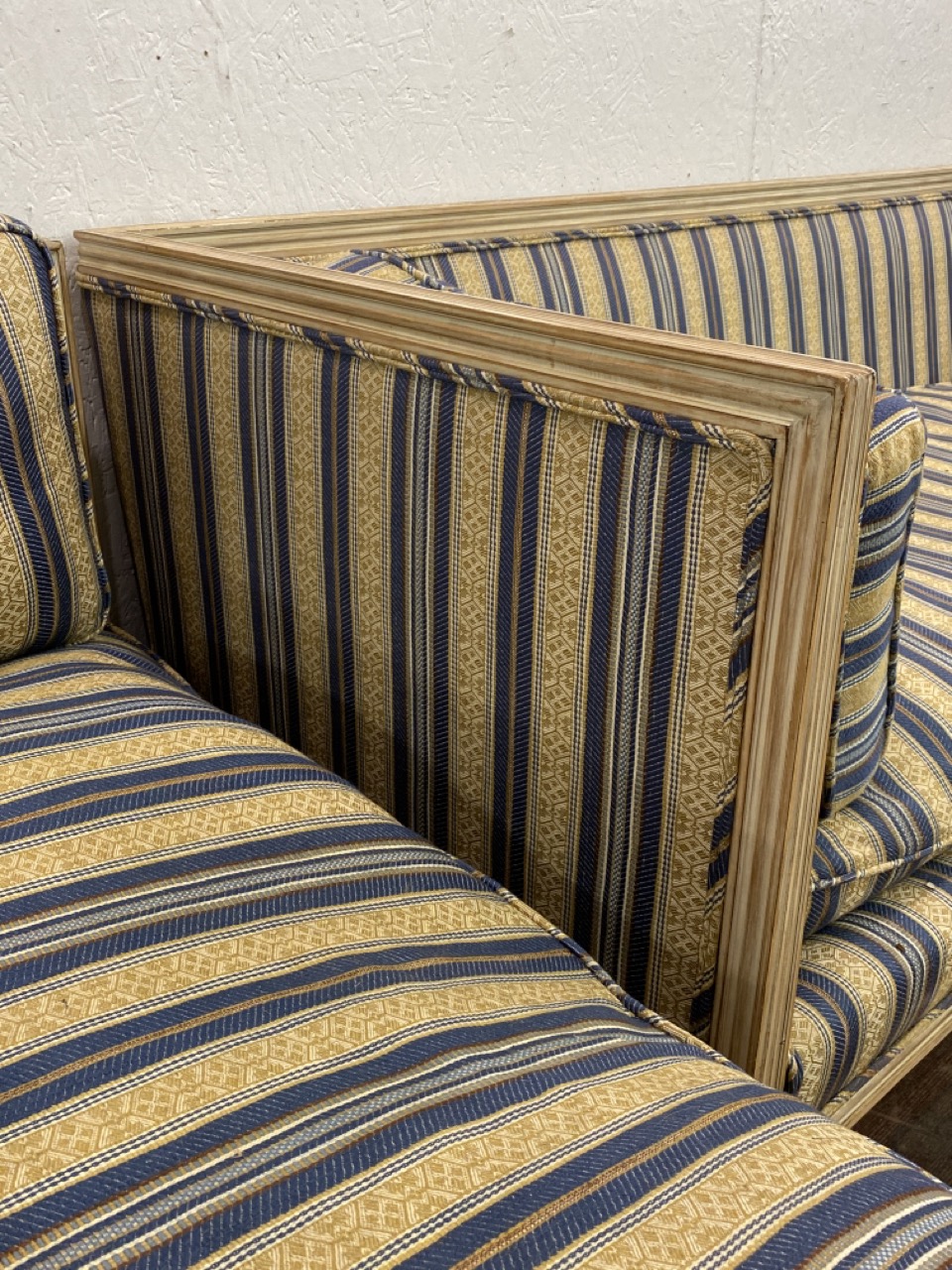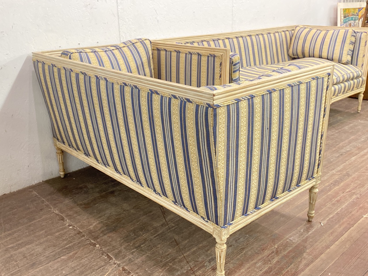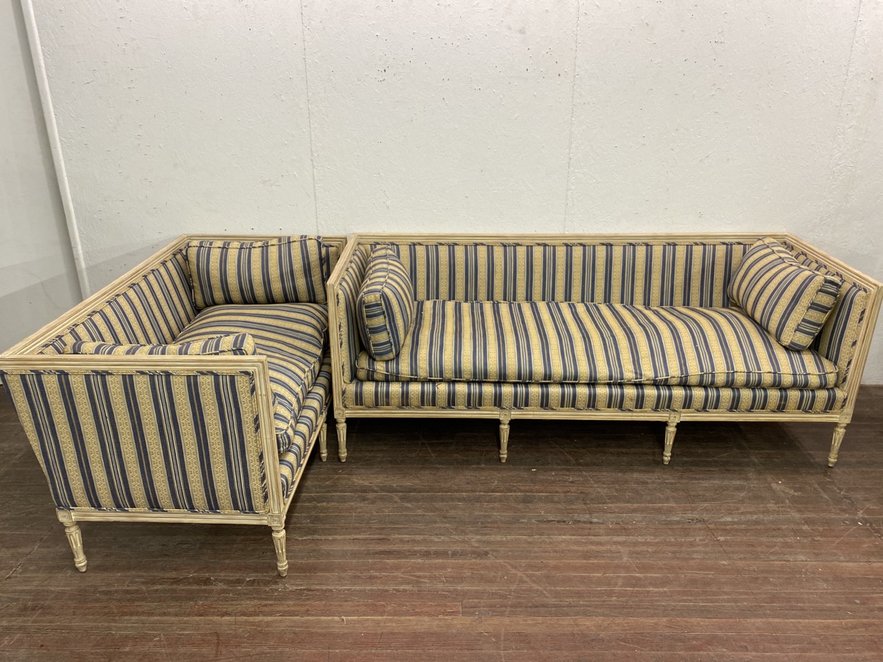Sofa and loveseat both newly reupolstered and cushions being down filled. Near mint condition Ready to use.