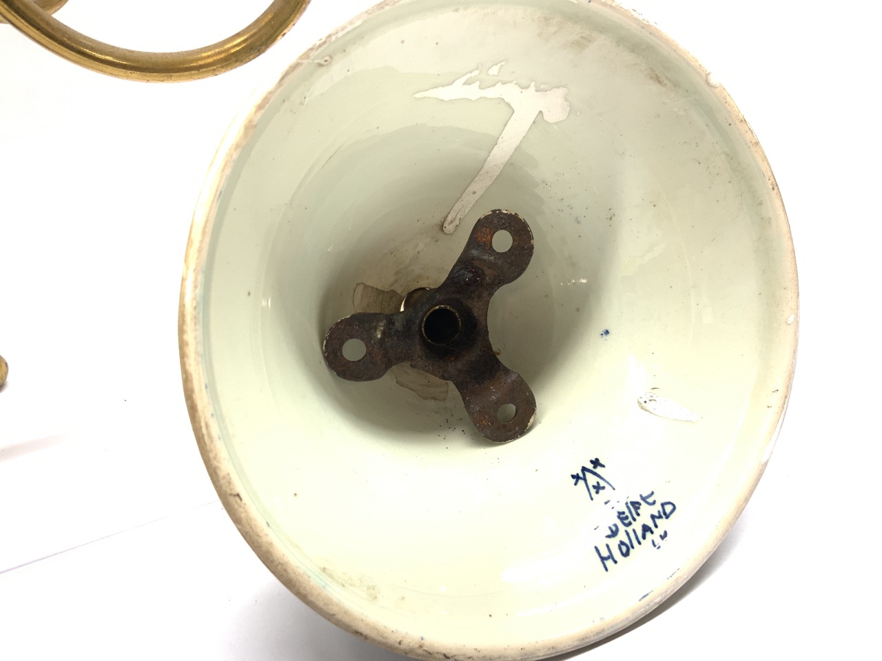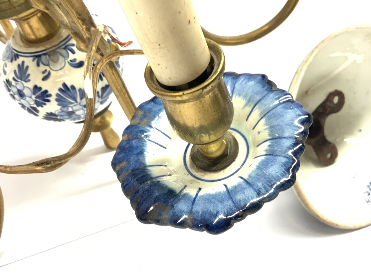 Blue and white delft porcelain with brass.