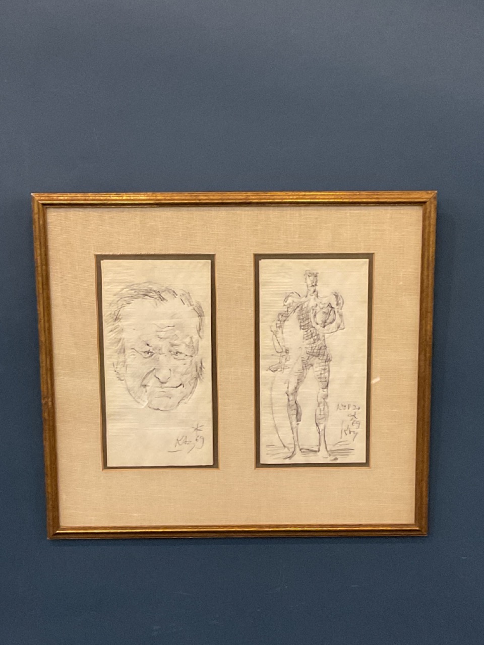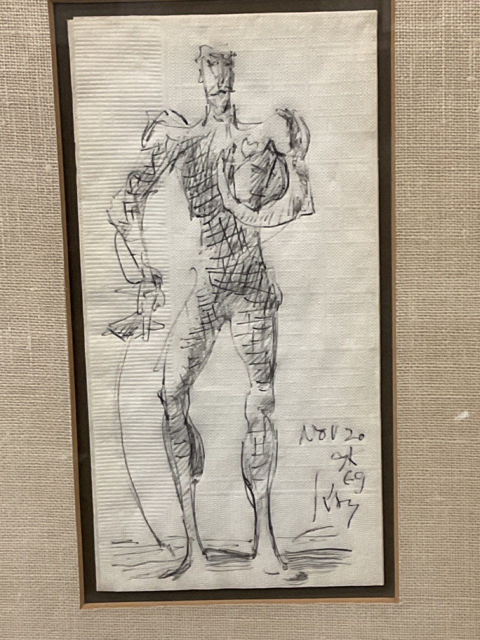Two (2) 1968 and 1969 pencil sketches on napkins.