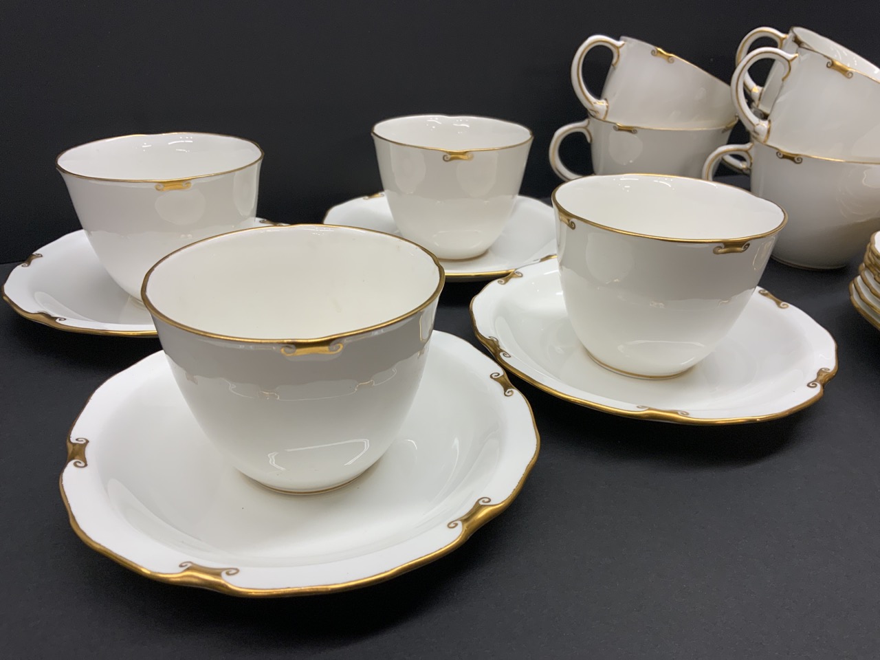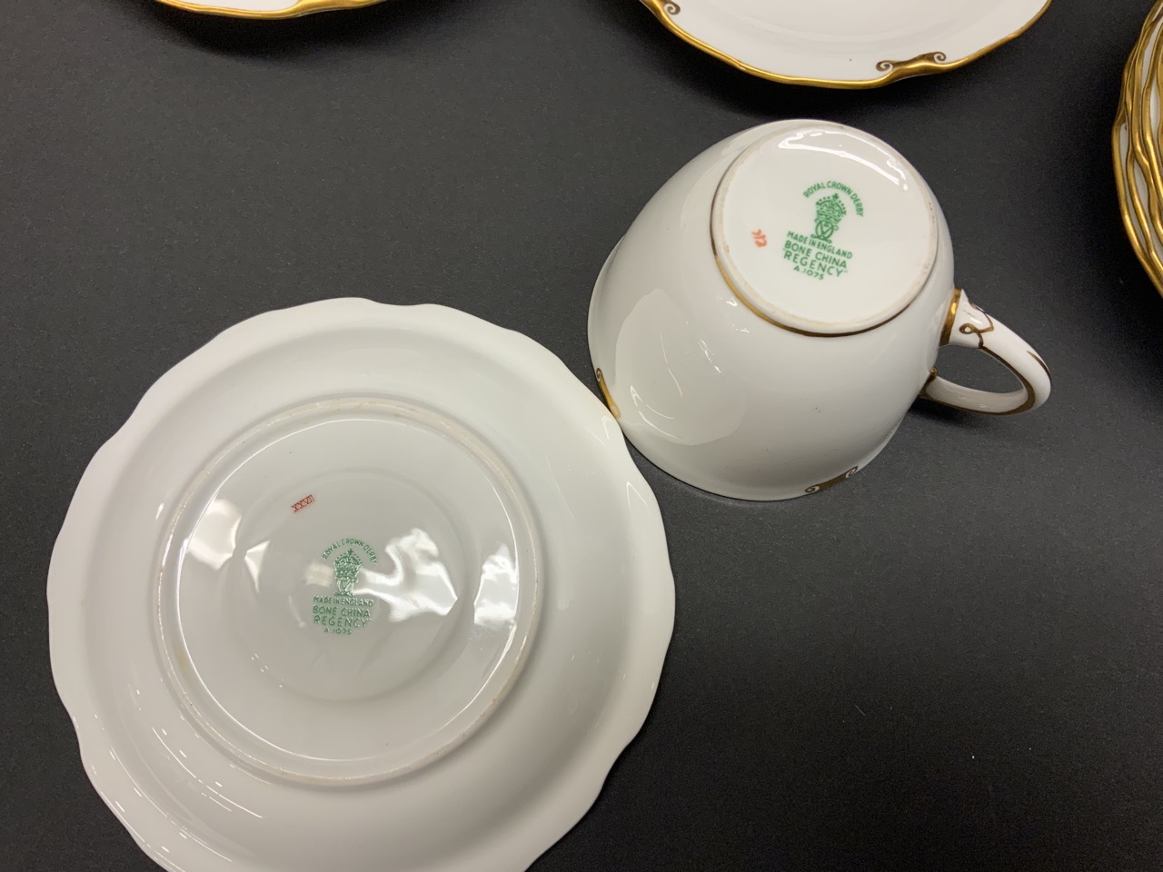 Service for ten Royal Crown Derby Regency porcelain cups and saucers.