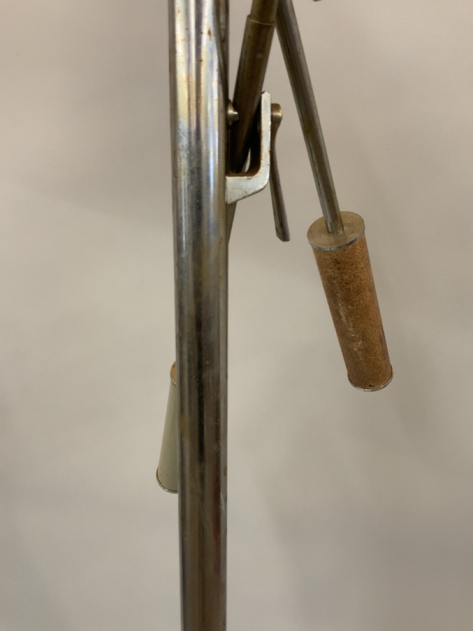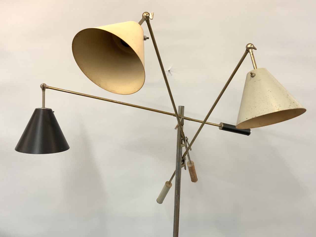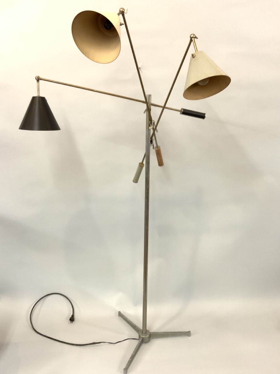 Lamp shades soiled and needing cleaning as well as chrome. Estate find. The lamp is structurally sound and complete.