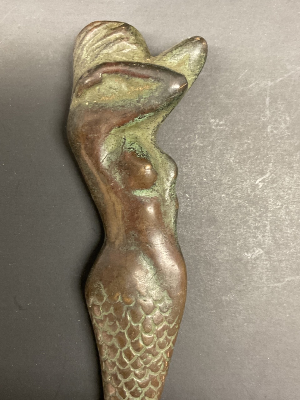 1928 Aston Fuller bronze nude mermaid bottle opener.