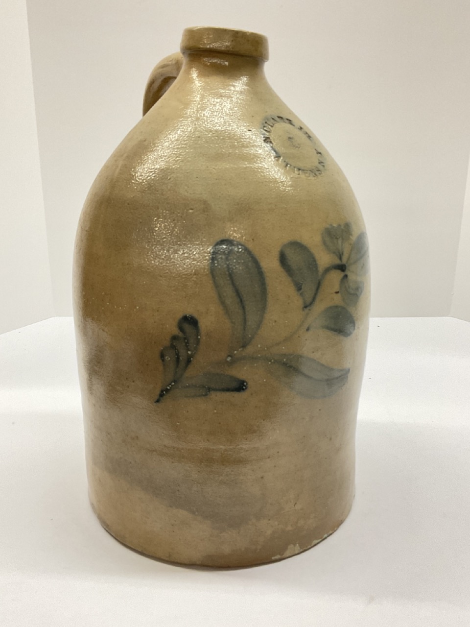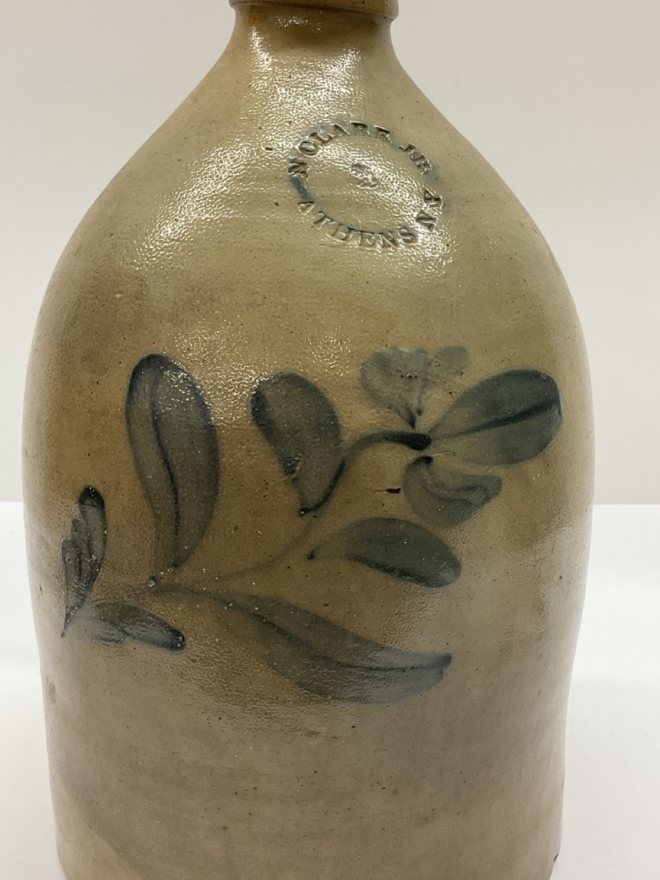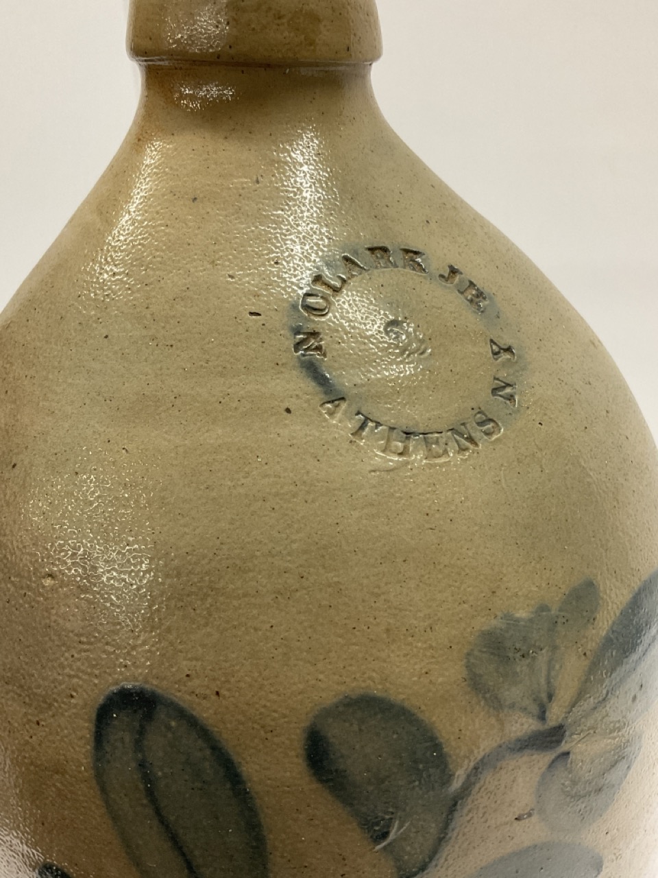 Clark, Athens, New York 2 Gal. Blue decorated stoneware jug.