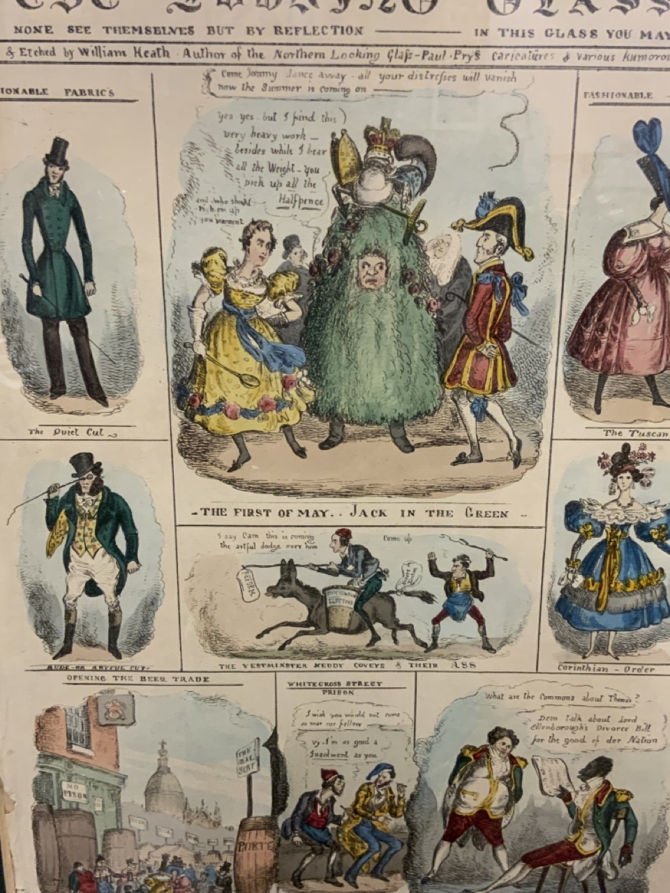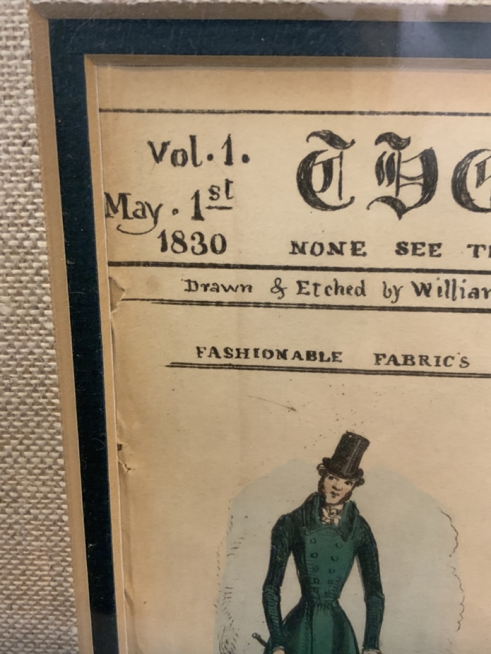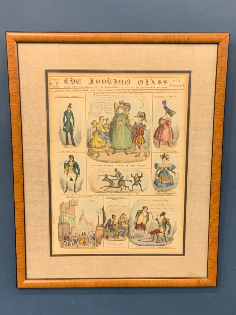 The Looking Glass Volume 1 May 1, 1830 hand colored print.