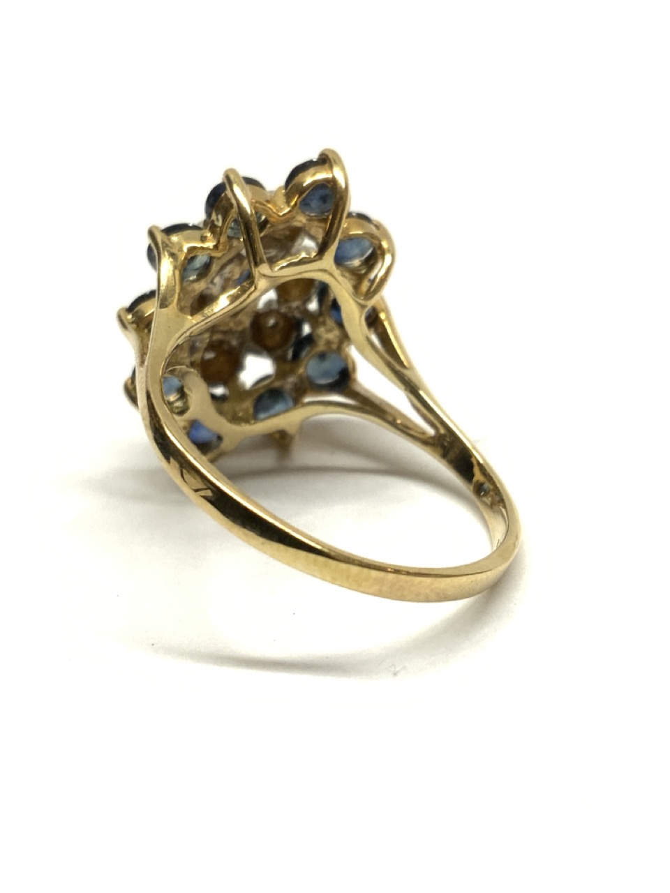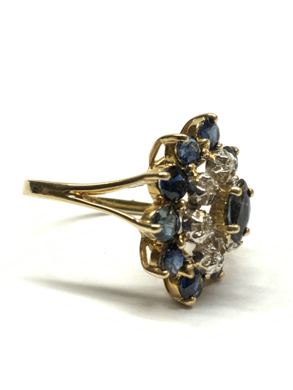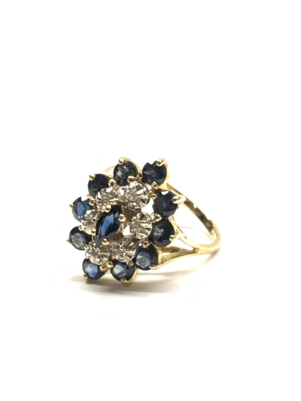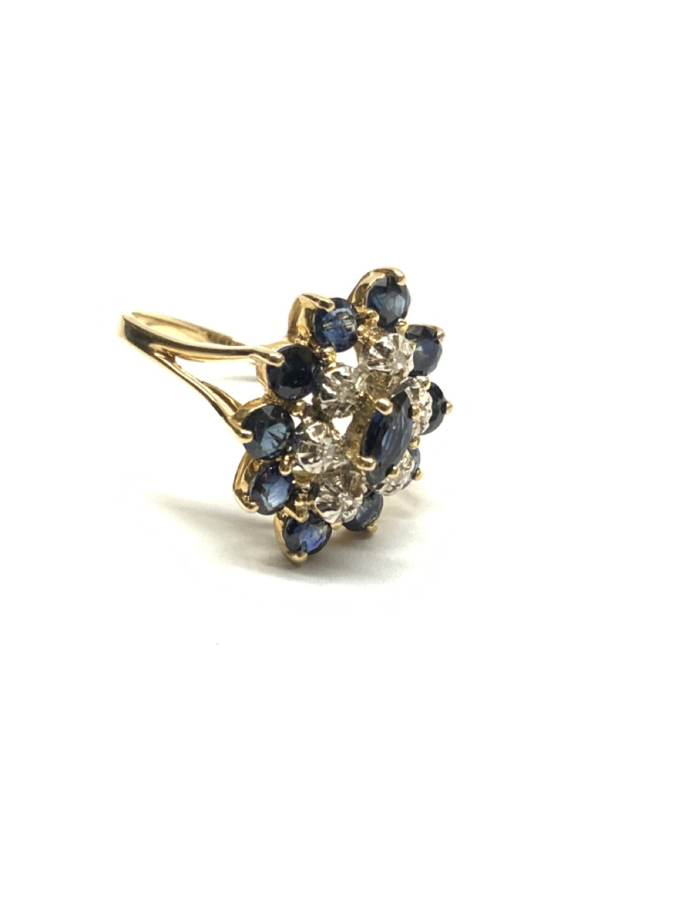 A 14k yellow gold blue sapphire and Diamond cocktail ring.
