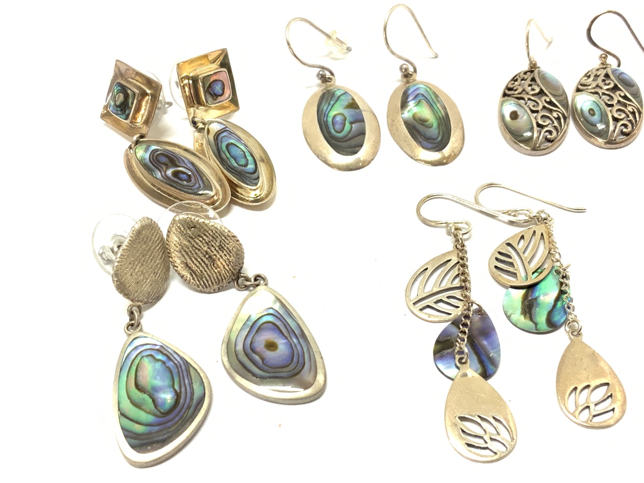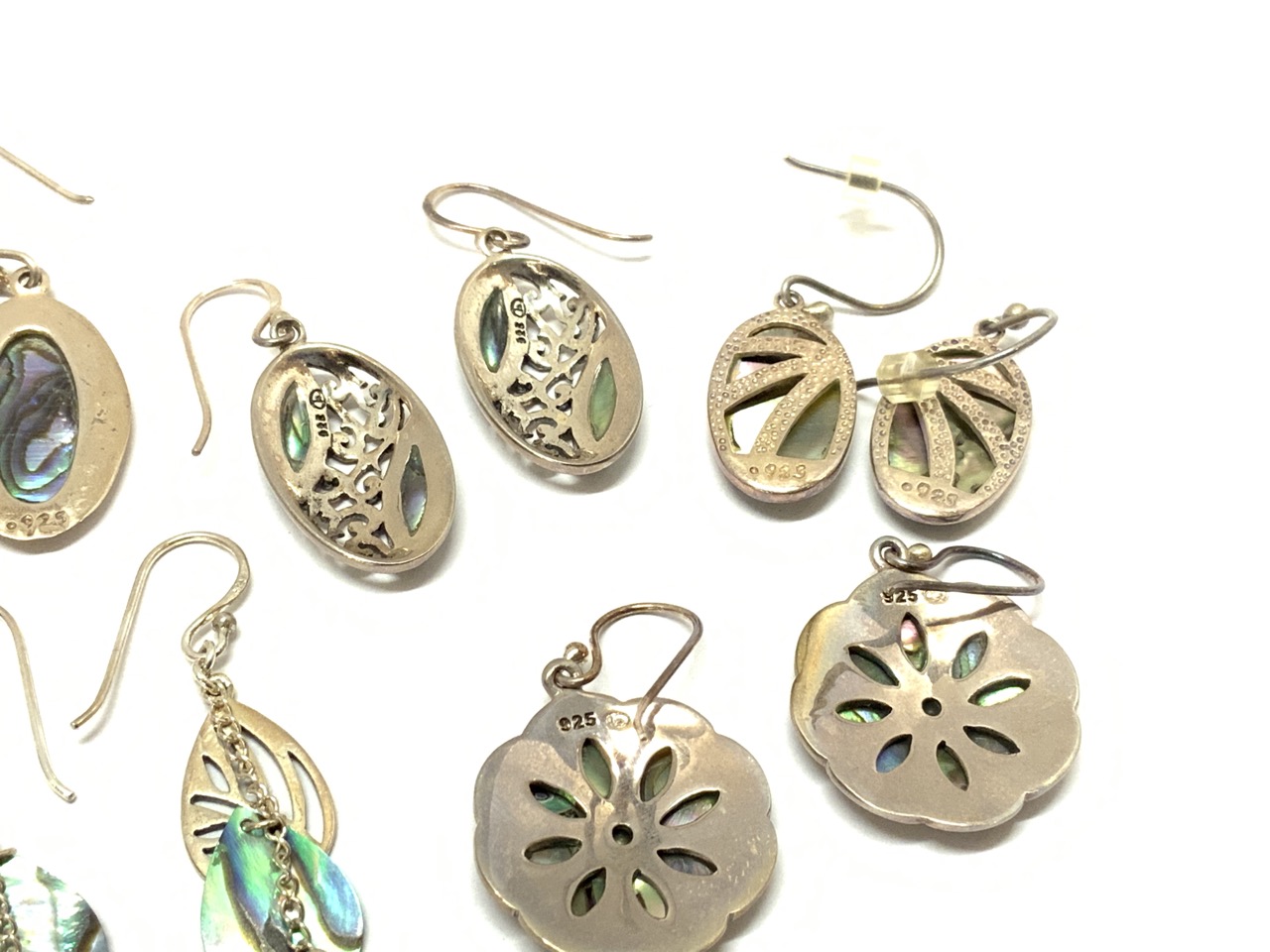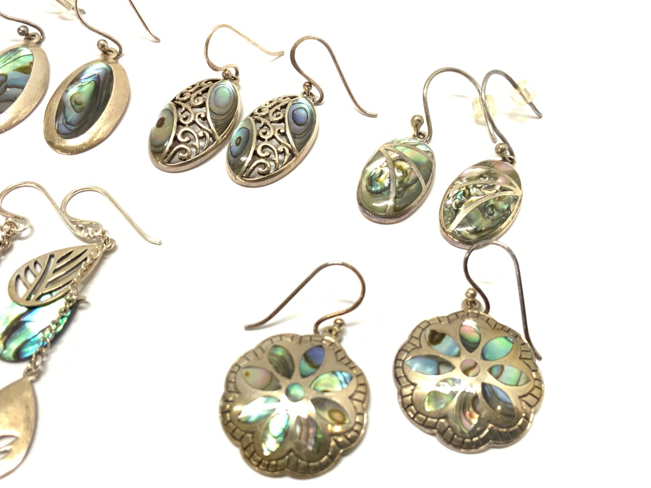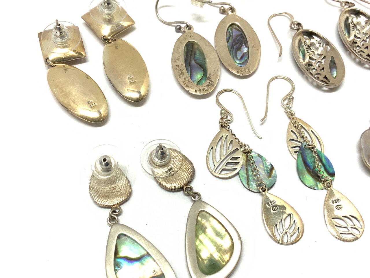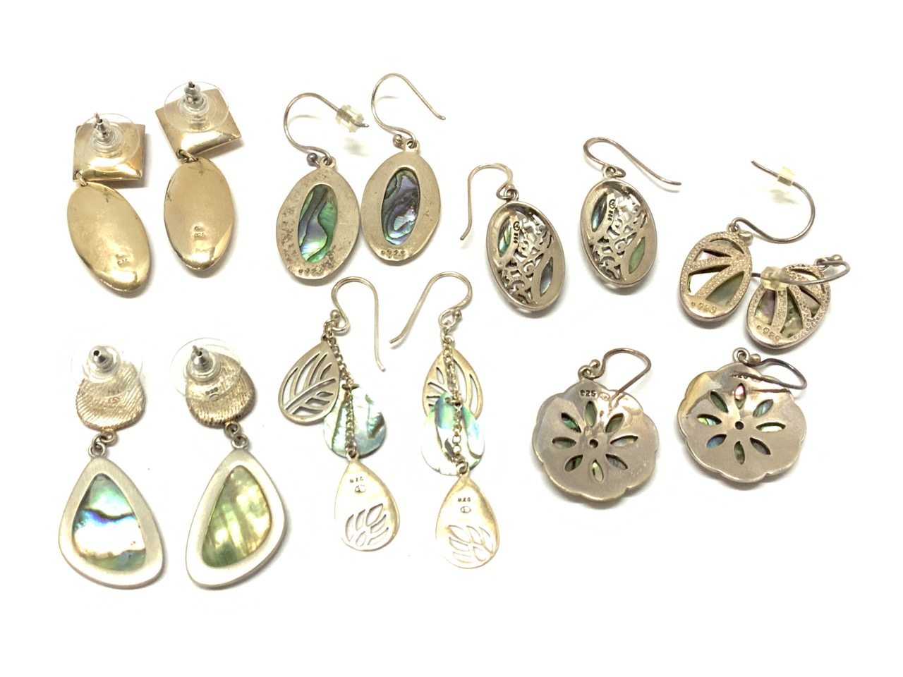 Assorted sterling silver earrings group. Seven (7) pairs.
