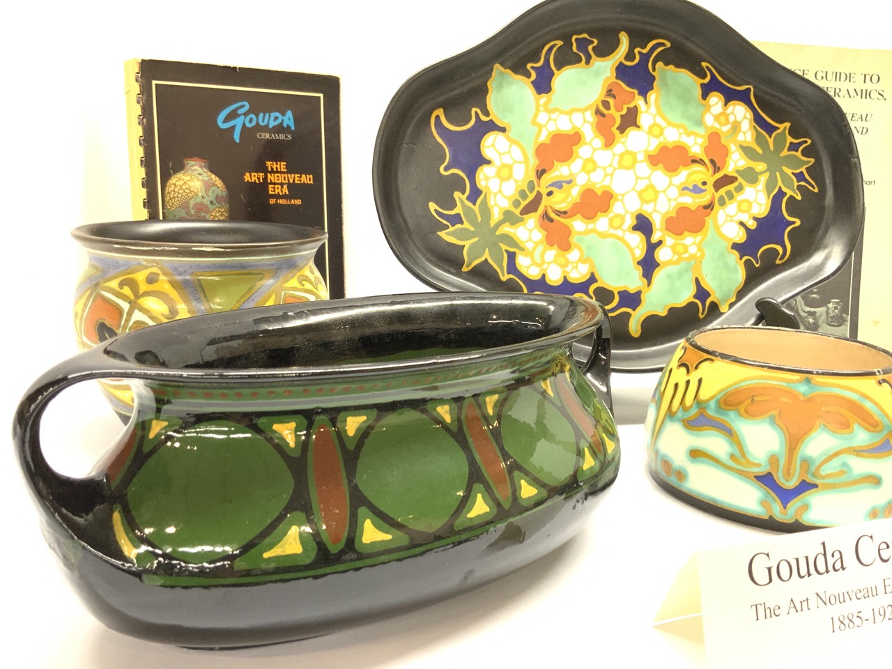A collection of Art Nouveau style Gouda pottery. Made in Holland.