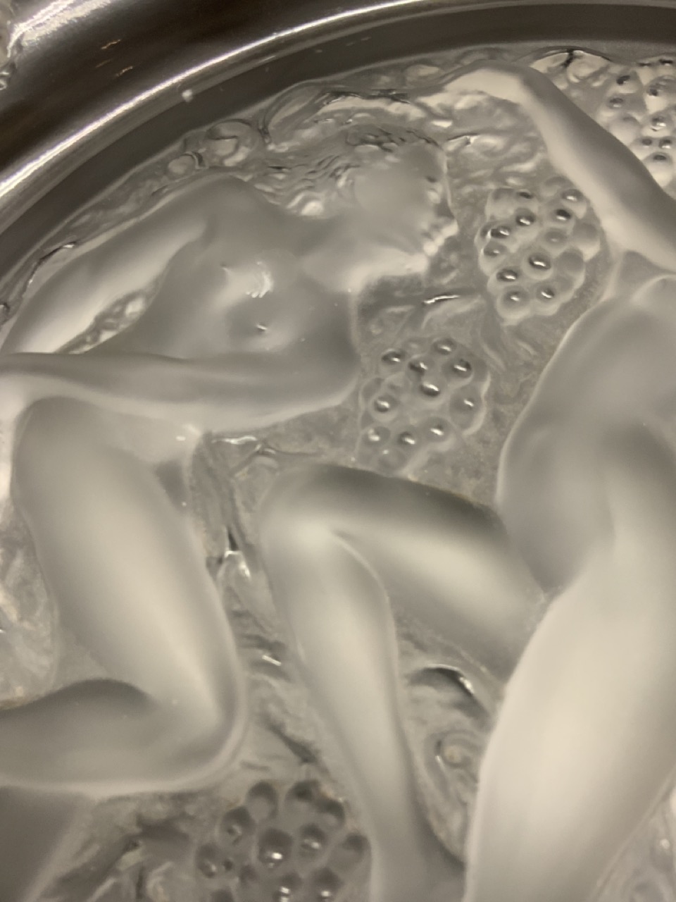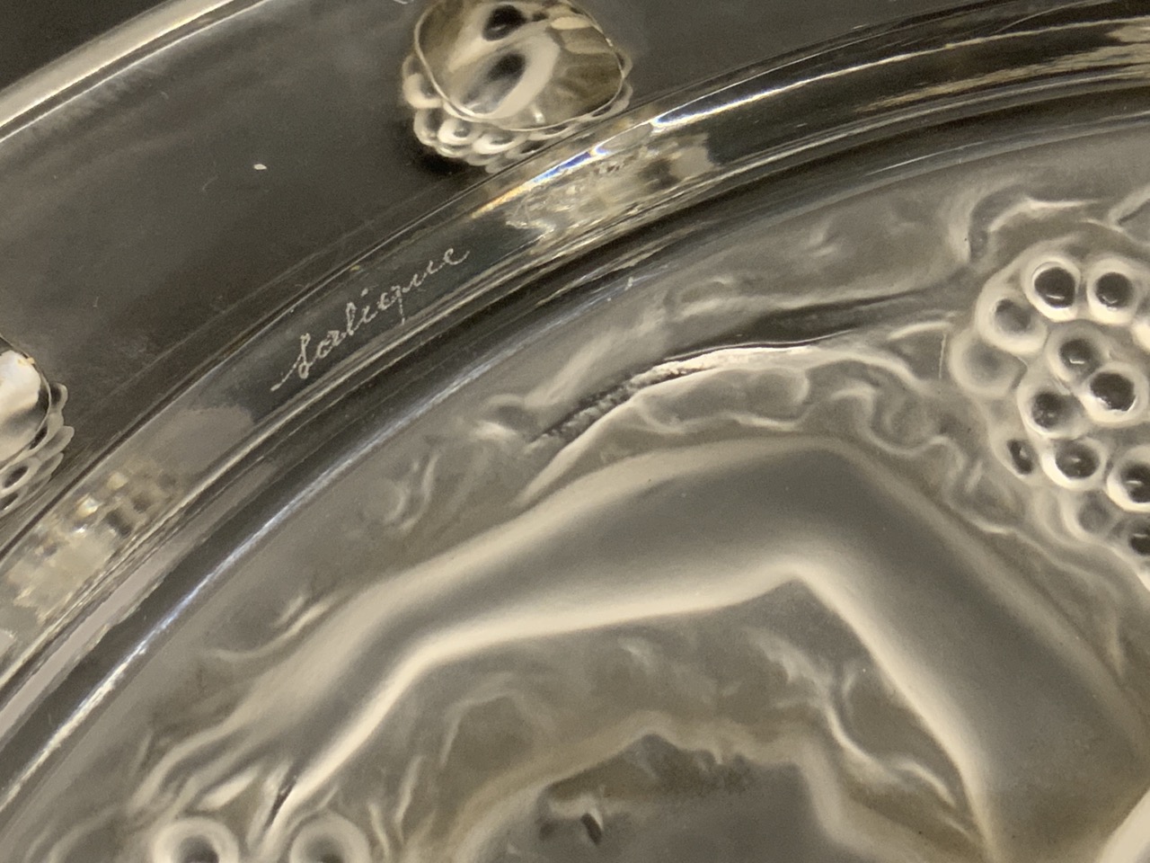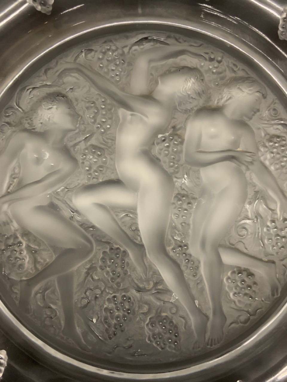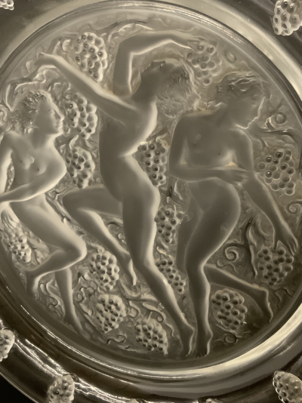 Côte d’Or or Three Dancing Nude Nymphs round charger with grape cluster border.