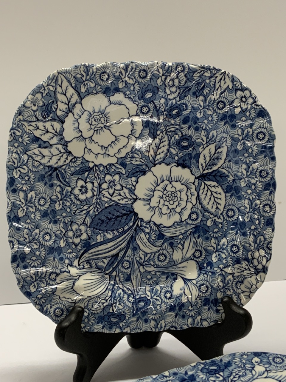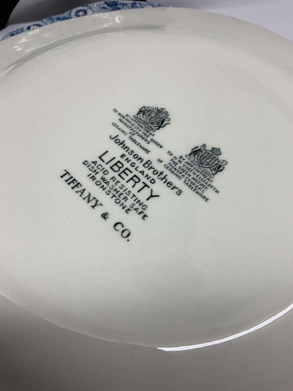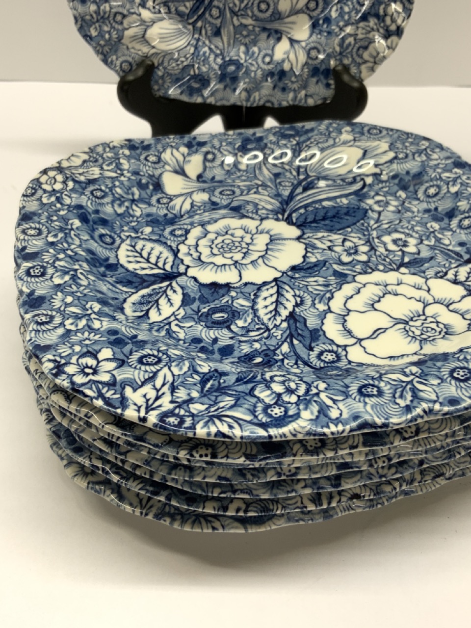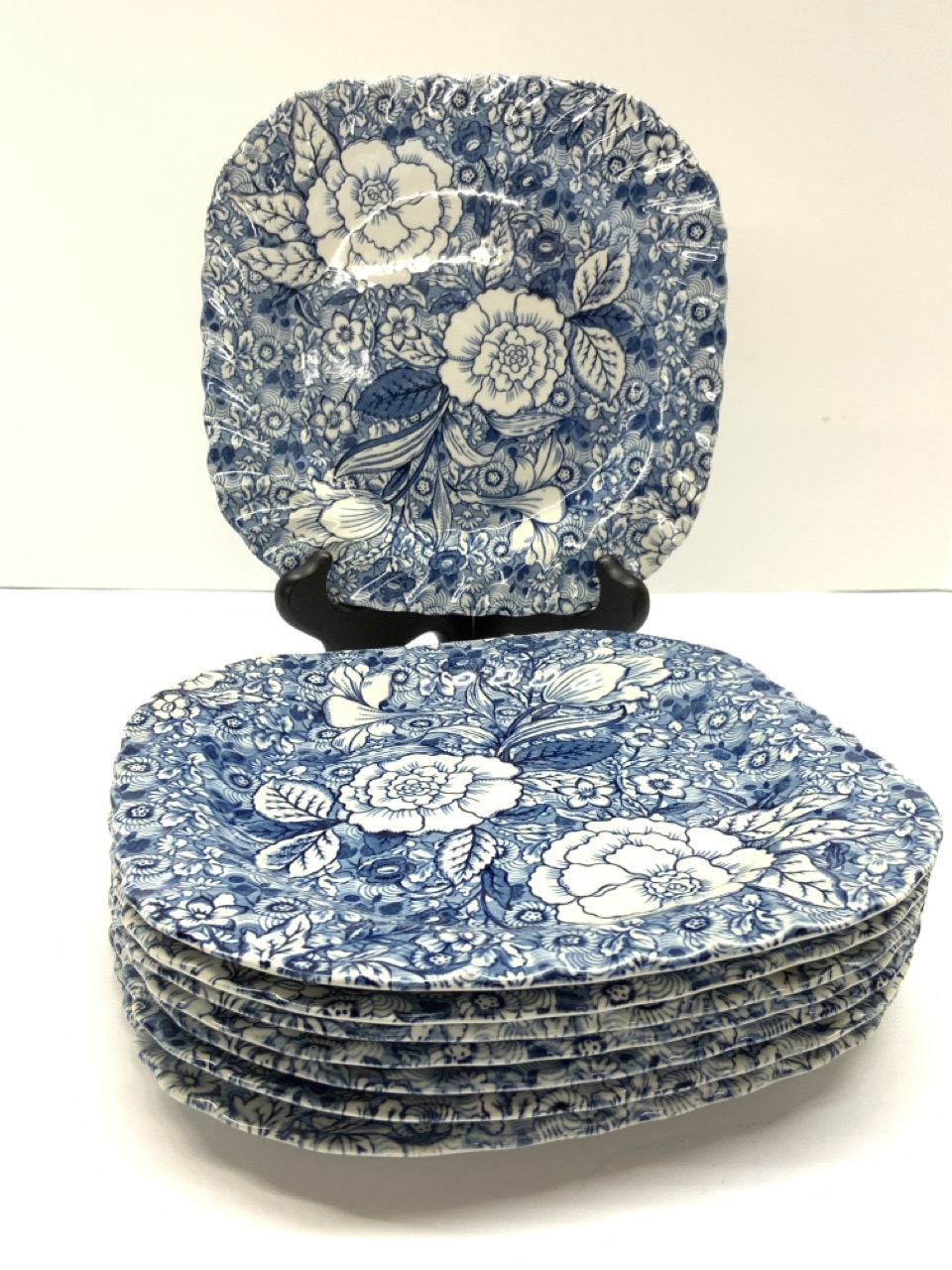 A set of eight (8) Johnson Bros. Liberty blue and white luncheon plates for Tiffany & Company.