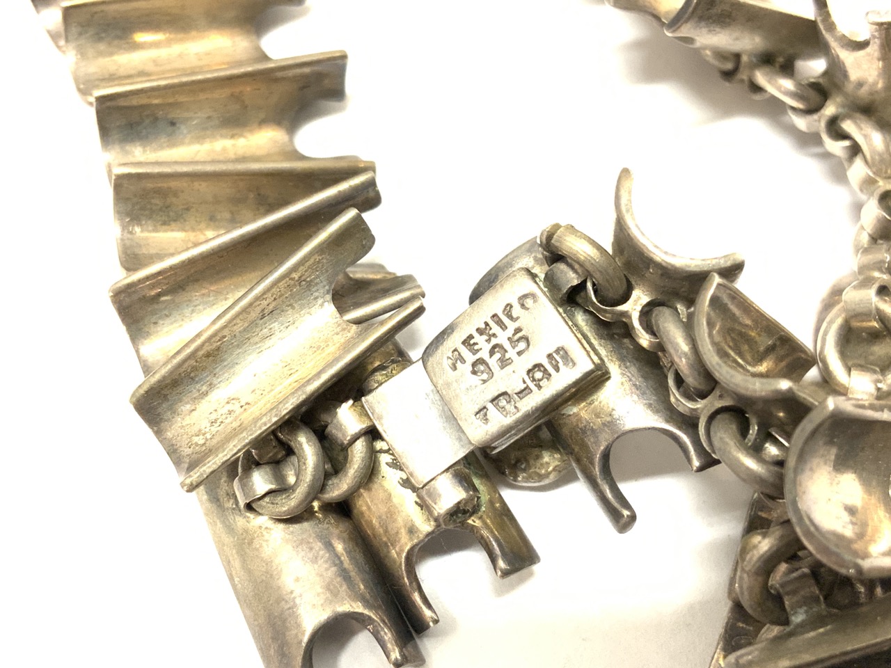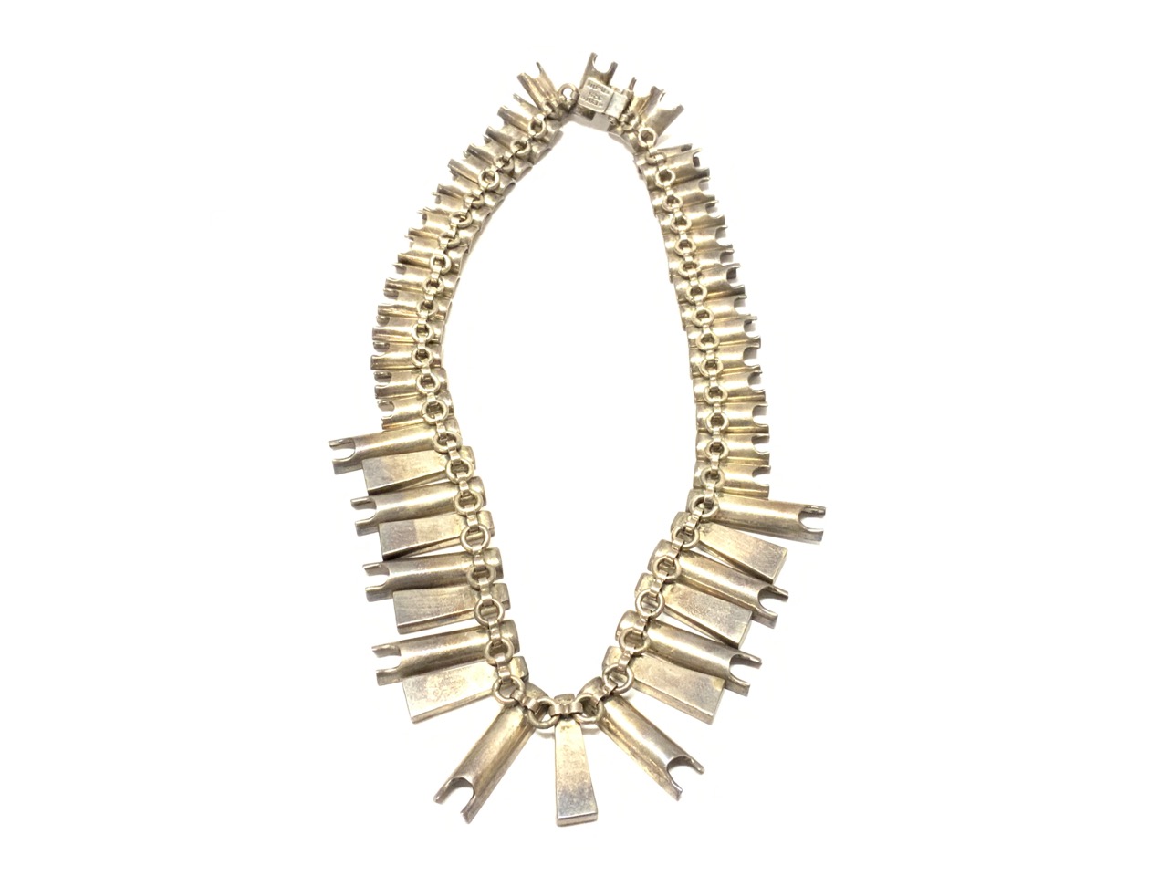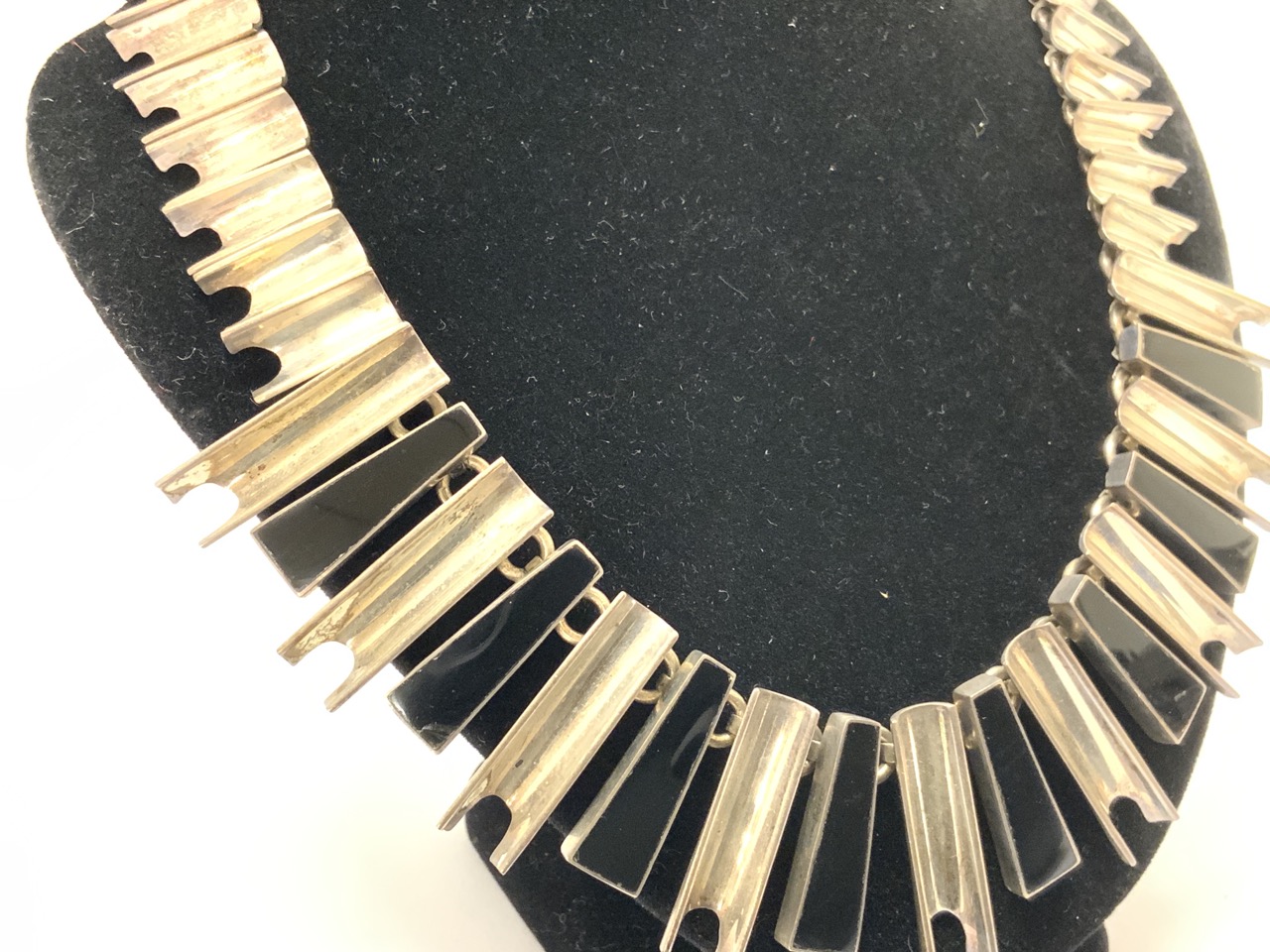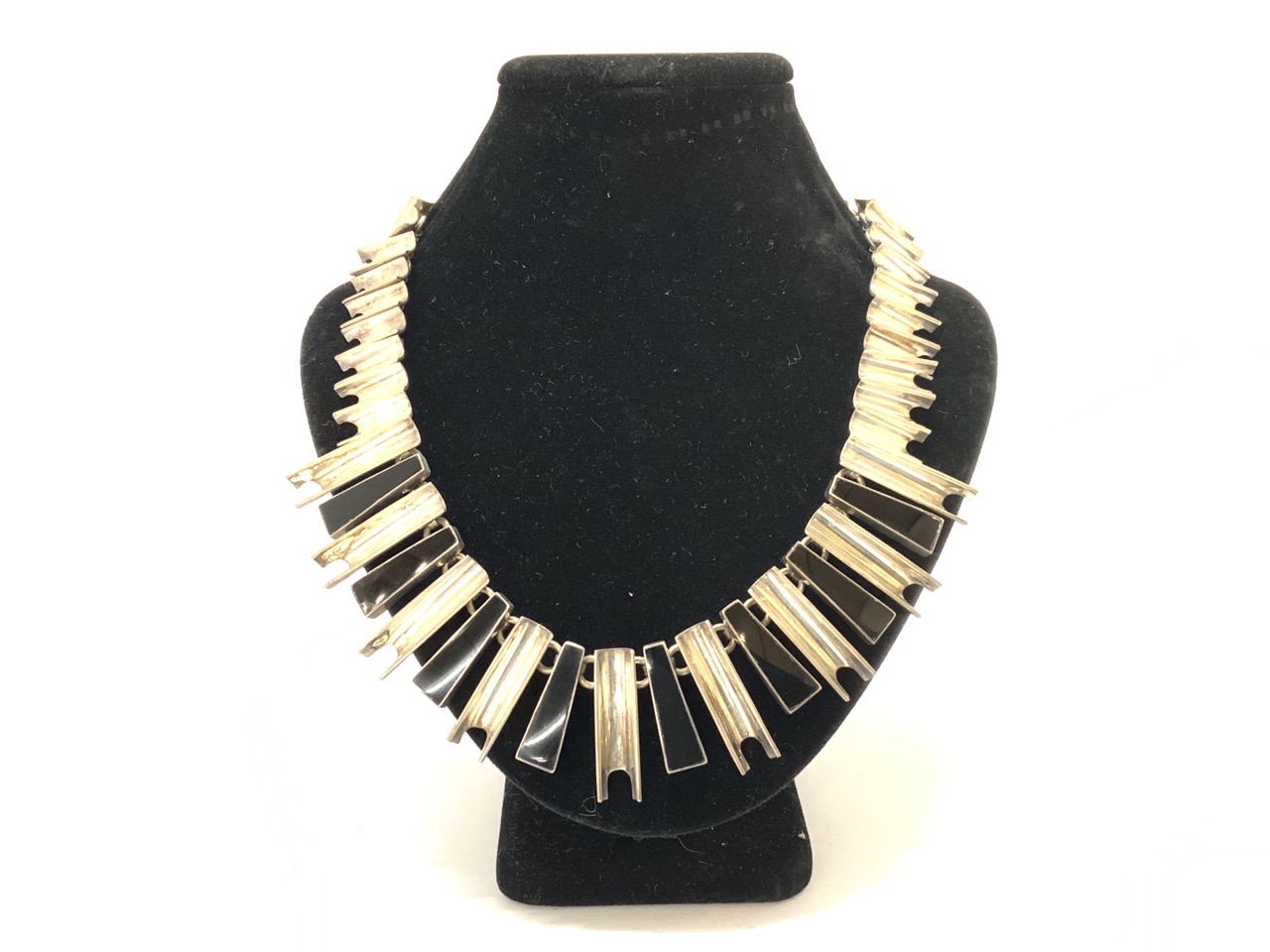 A Mexican sterling silver and onyx necklace. Small chip in onyx noted. Please see photograph preview or call.