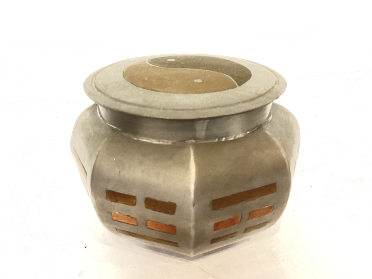 tea caddy 6 1/2 x 4 1/4 x 2 1/2” Marked