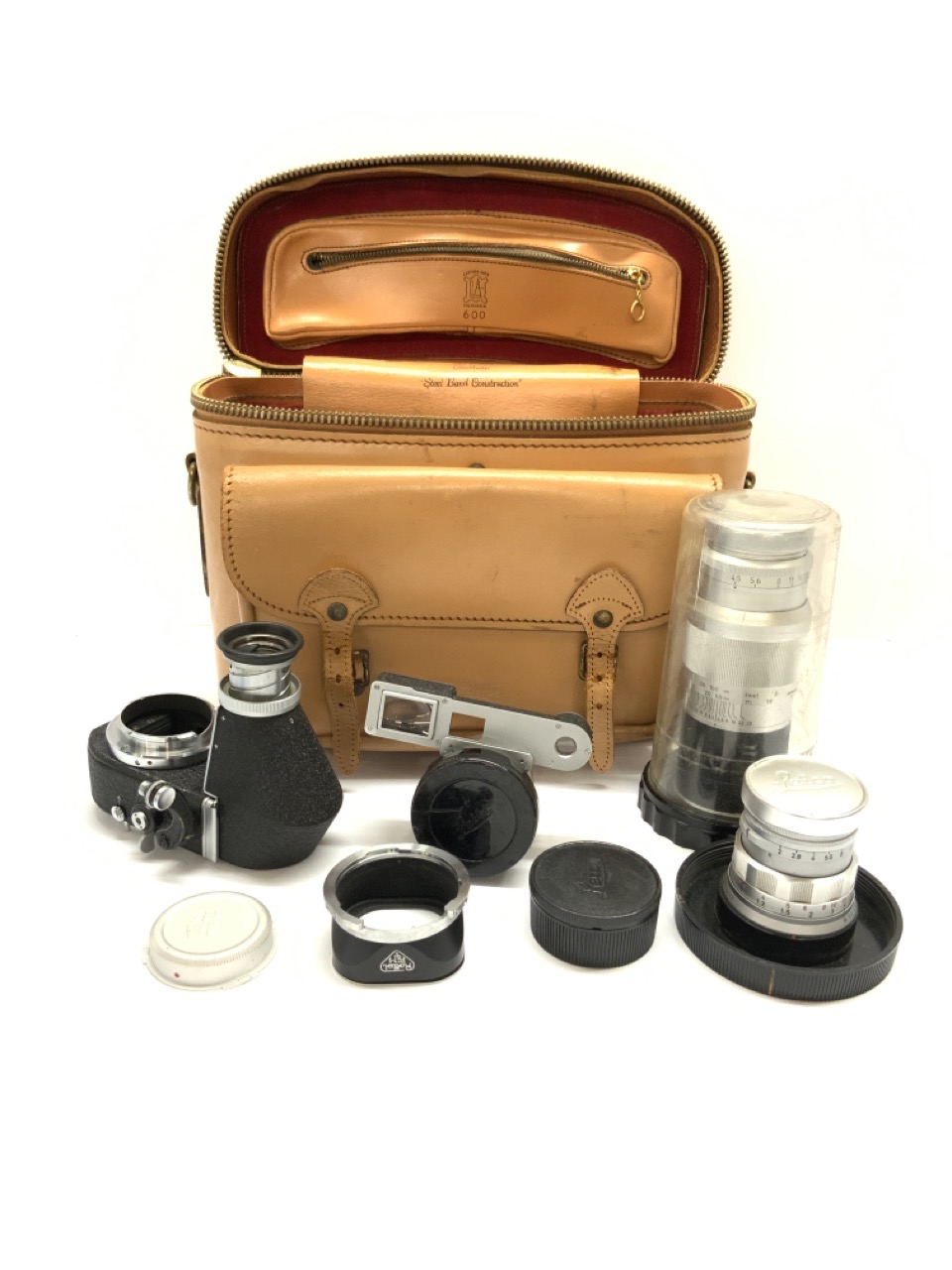 Estate Found Leica Camera Lenses and Acessories with leather case.