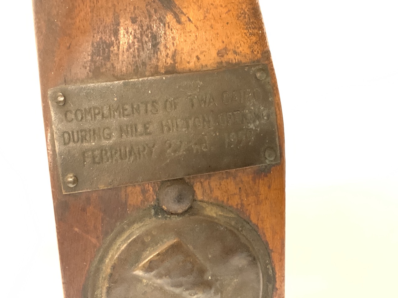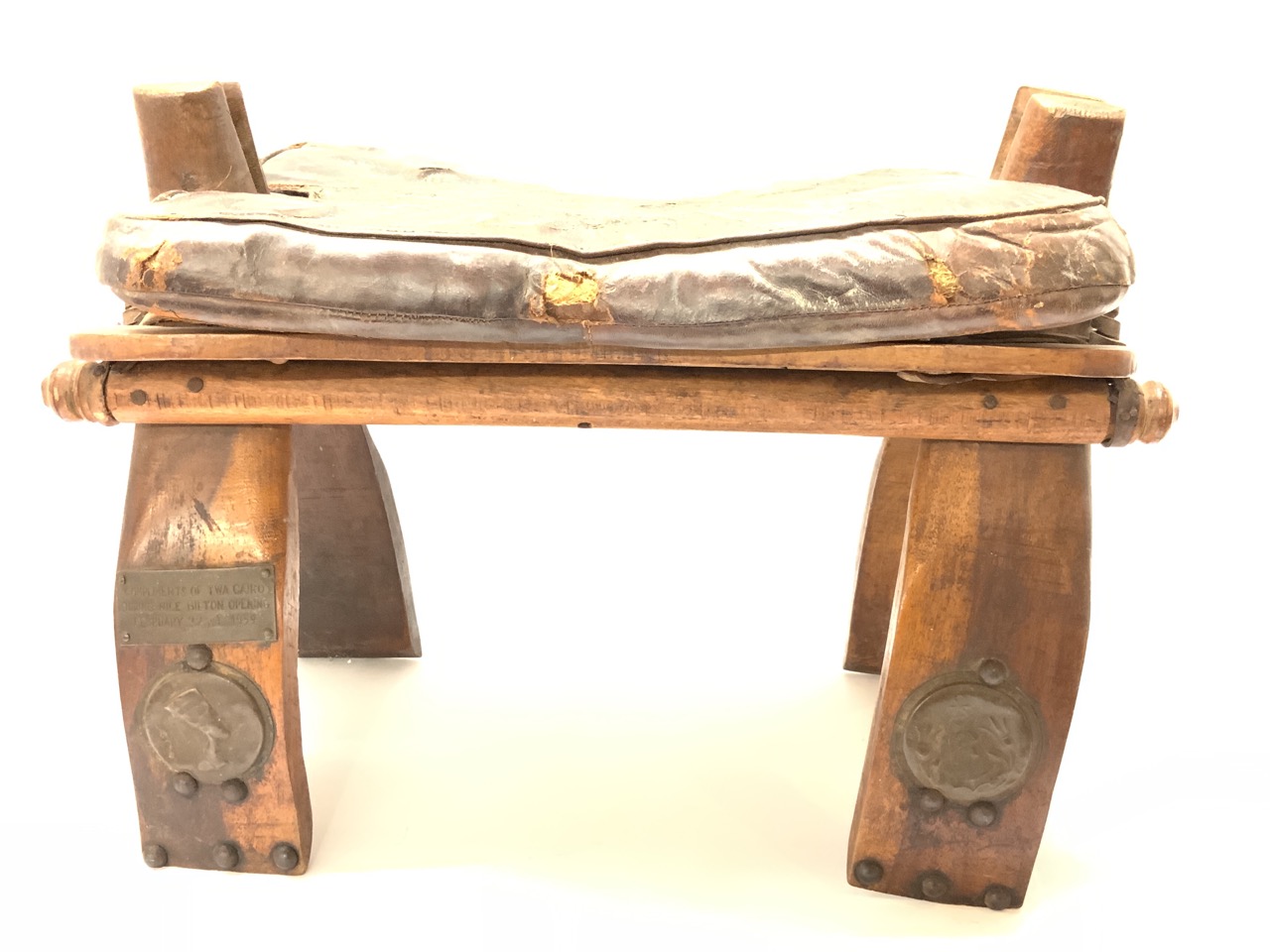 Compliments of TWA Cairo 1959 Wood Leather Miniature Camel Saddle