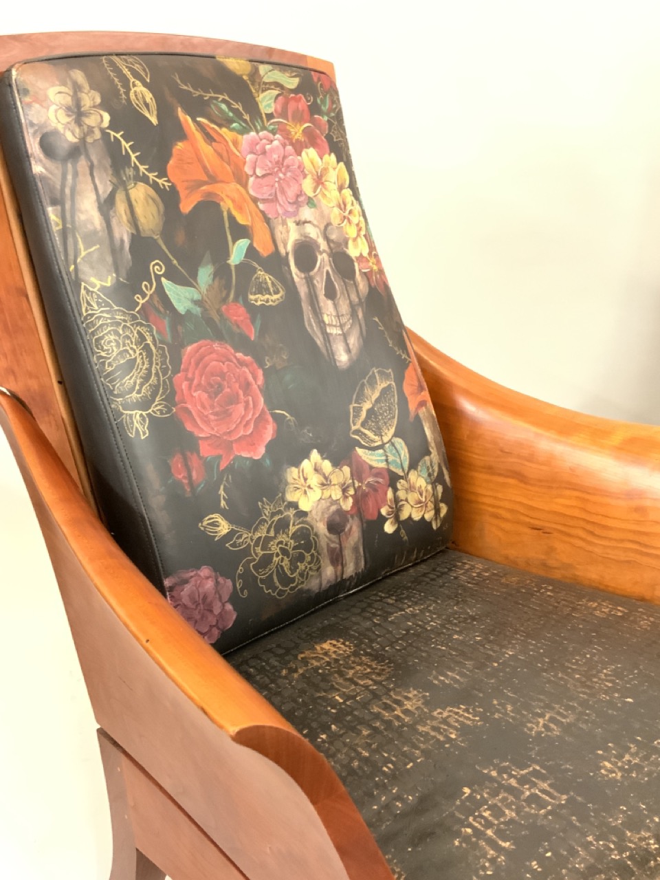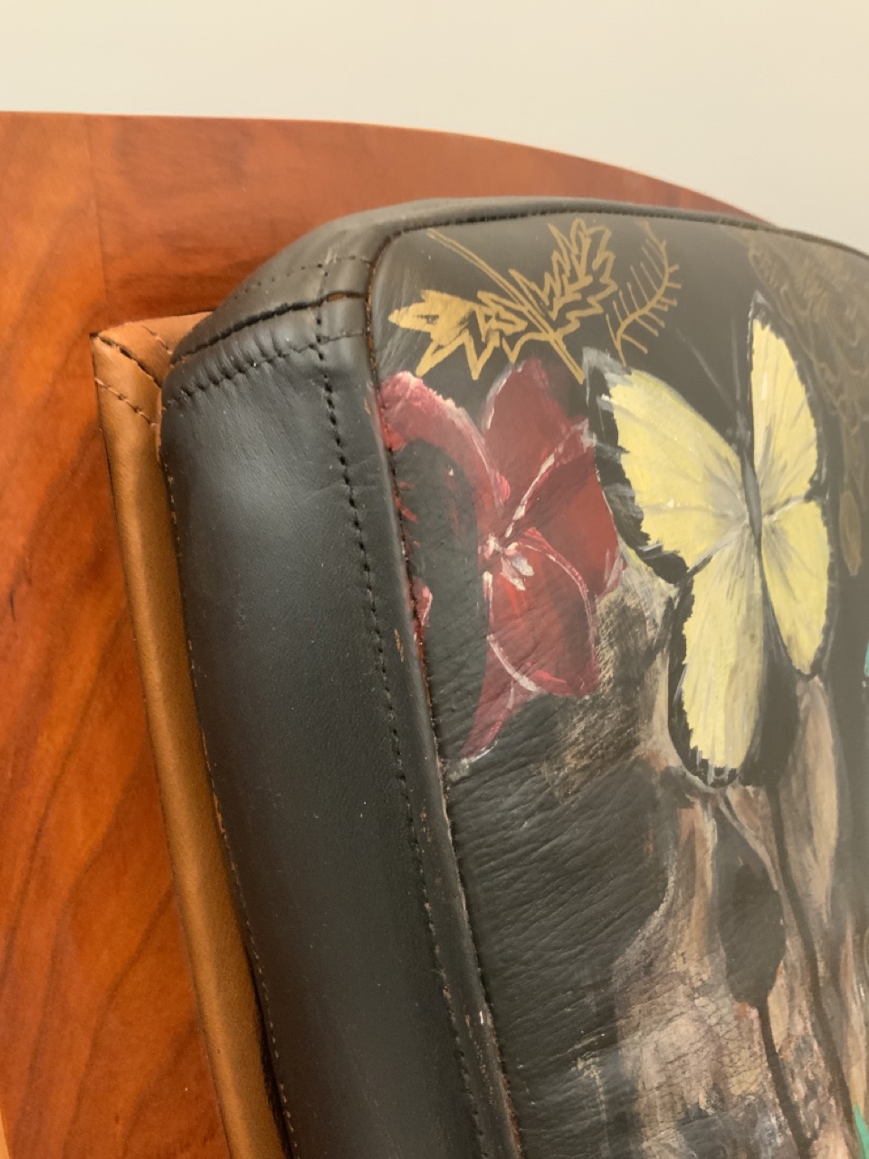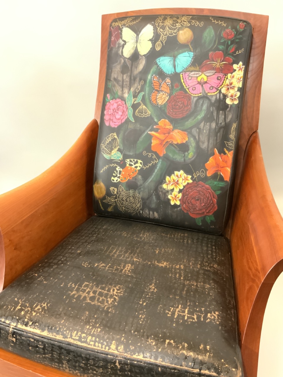 Paint used: Angelus brand leather paint with matte top coat from Liquid Kicks. The seat is sealed in flat and rolled on glossy to give it a crocodile skin effect.