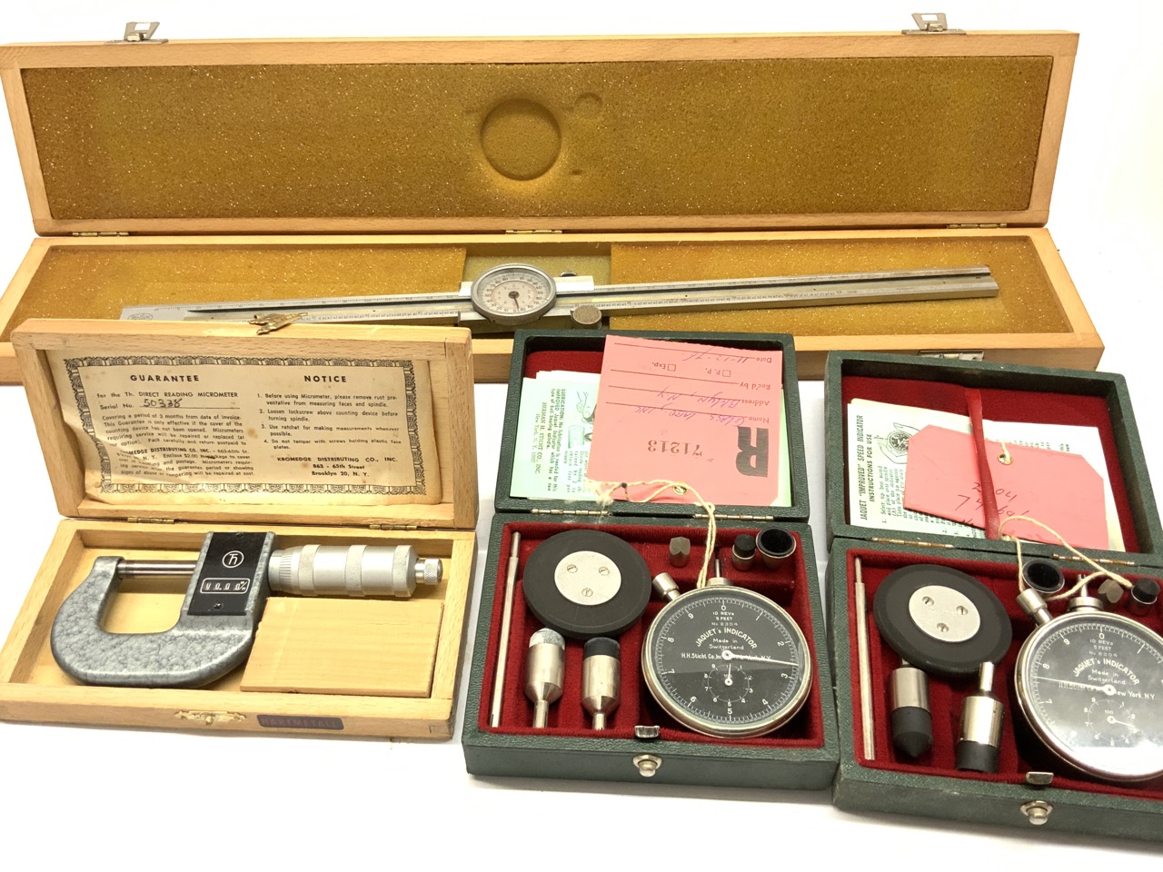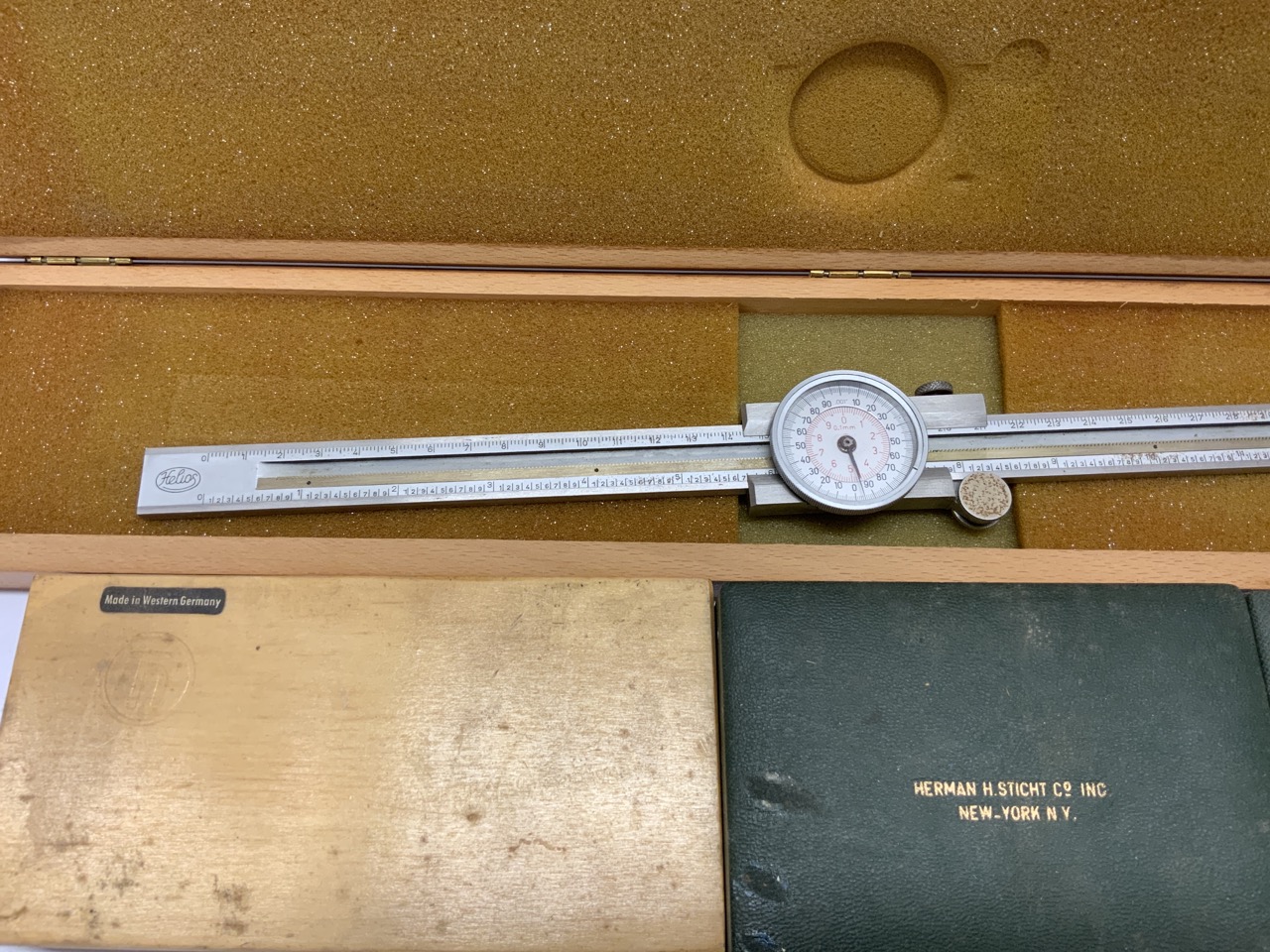 Helios calipers Germany Hartmetall Kromedge micrometer and jaquet’s Indicator